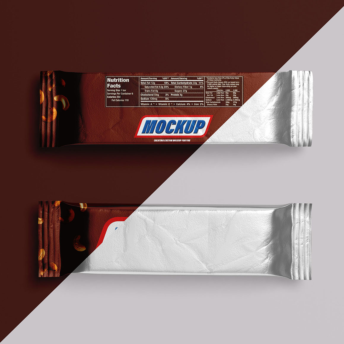 Chocolate bar or snack packaging – presentation mock-up template in PSD format from Andreas Agus. Download & enjoy 😉