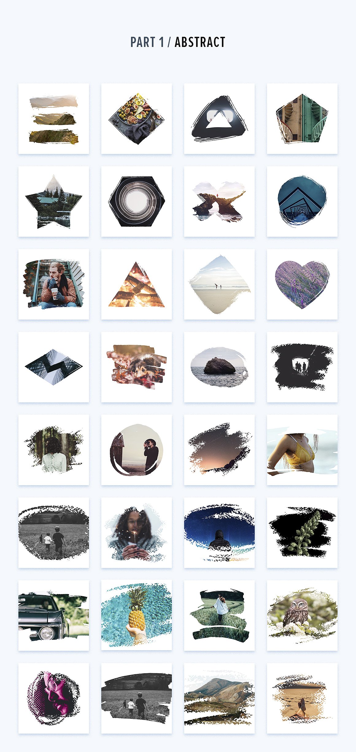 Make your Instagram publications more original and engaging with our new collection of geometric and abstract photo masks. There are 52 creative templates able to turn even the most generic shot into something vibrant and attractive. Just pick the best fitting mask for your image and apply! It’s really easy and won’t take much time.