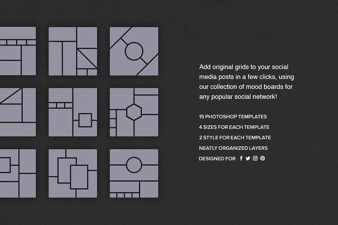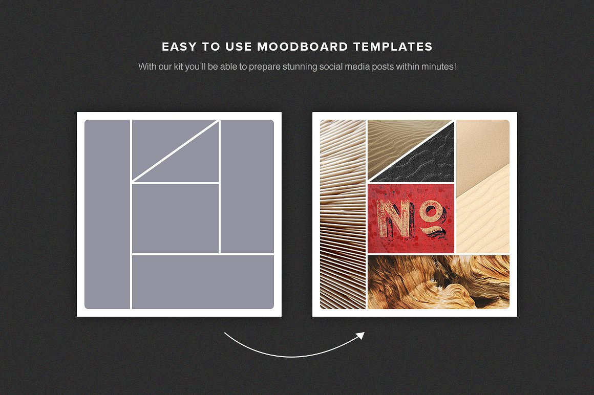 Here is another addition to our library of goods for social marketing! This time it’s something new from our team, a comprehensive collection of Mood Boards for the most popular social networks: Instagram, Facebook, Twitter and Pinterest. It would be the perfect working and promotional tool for designers, bloggers, architects, fashion designer, and other creatives! Share your vision with your colleagues, clients, and your audience using ready-to-use mood board templates from our collection!
