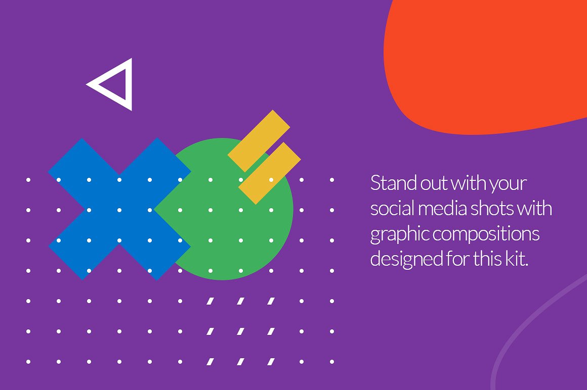 The second volume of the Social Media Booster Kit is entirely focused on the product marketing. Its vibrant templates featuring beautiful geometry shapes, vivid colors, and trendy patterns are created to help you to stand out of the crowd and promote your work and goods with style.