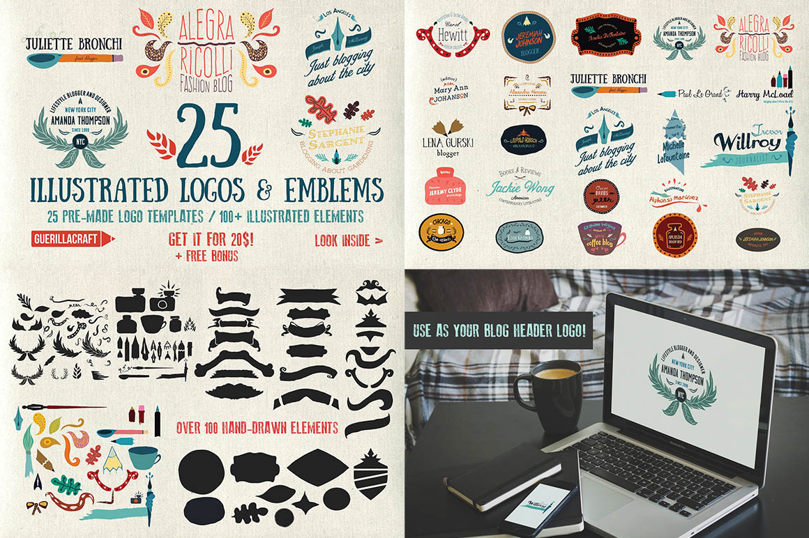 B6. 25 Illustrated logos and emblems by Guerillacraft