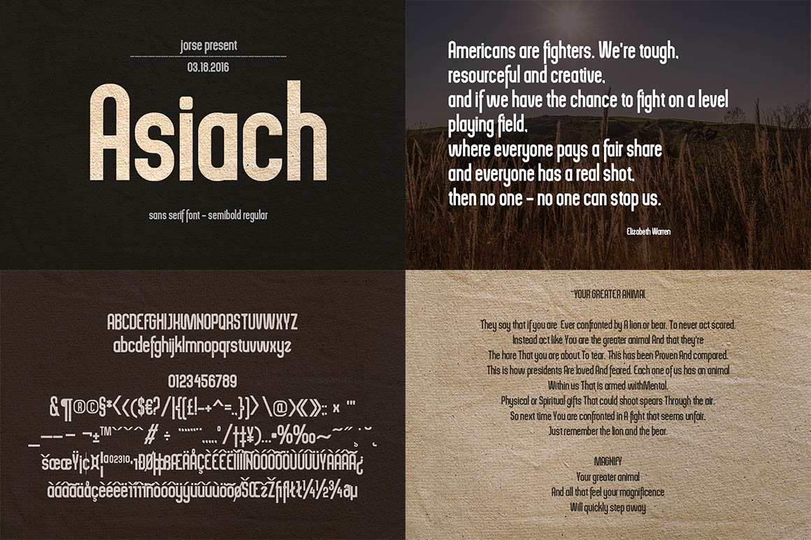 Asiash is a sans serif font has a sleek typeface, font is very simple and easy to manipulate: logo, slogan and made in advertising messages.
