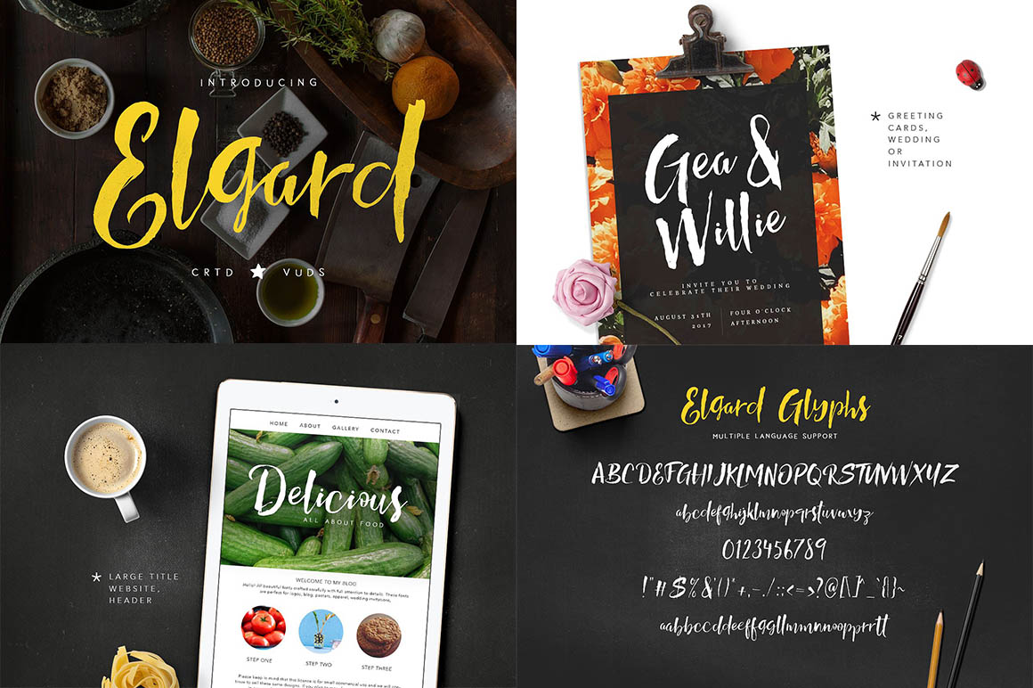Elgard is brush script font, every single letters have been carefully crafted to make your project with this font looks beautiful. With brush script style this font will perfect for many different project ex: quotes, blog header, poster, wedding, branding, logo, fashion, apparel, letter, invitation, stationery, etc.