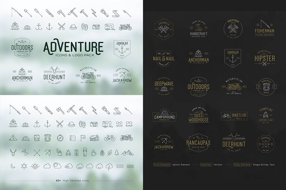 B3. Adventure Icons + Vintage Logo Pack by Pratamaydh