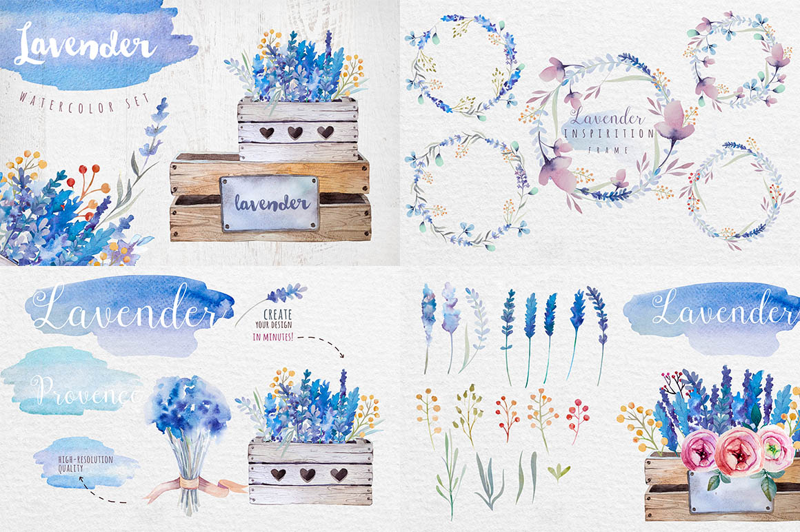 This set of high-quality hand-painted watercolor lavenders set. Perfect graphic for DIY, wedding invitations, greeting cards, quotes, blogs, posters and more.