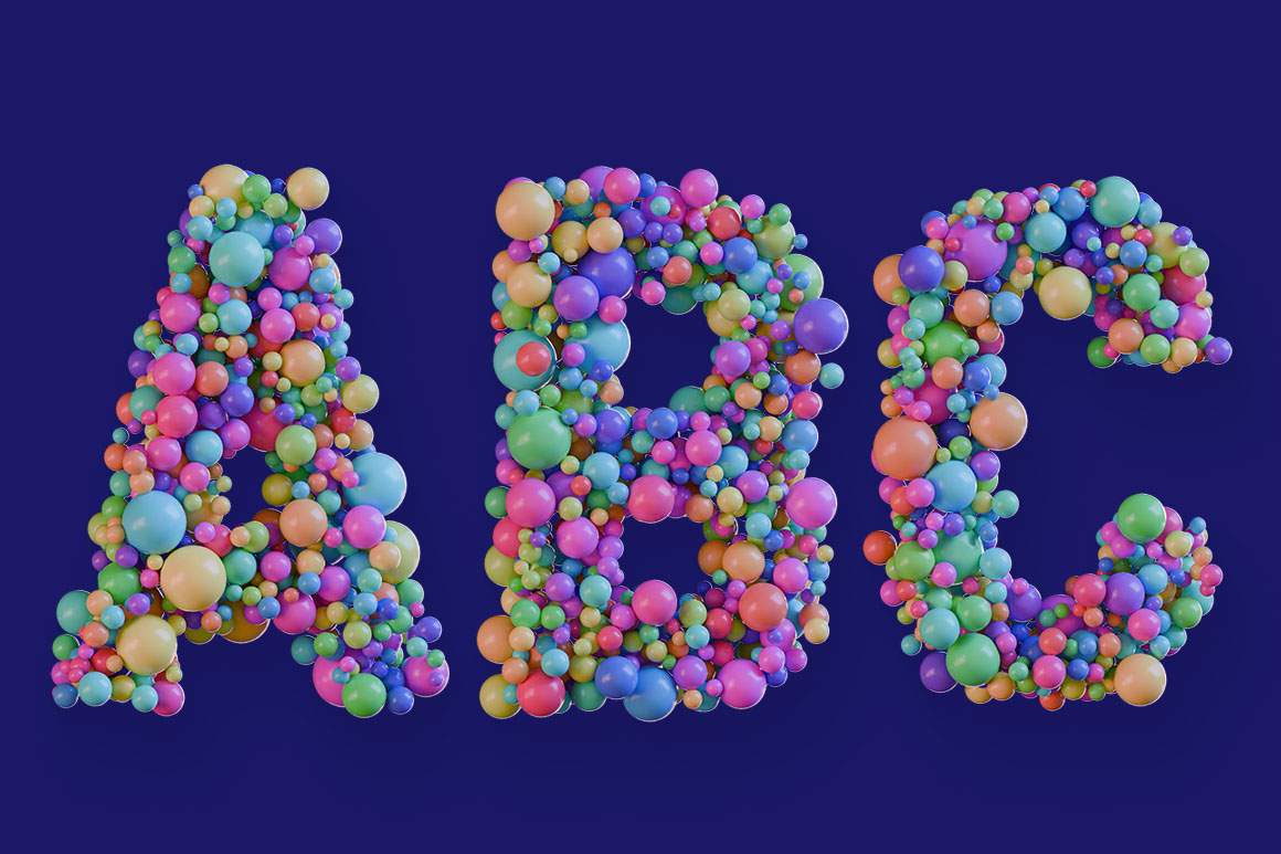 New and FREE graphic alphabet or transparent PNG lettering. This time in colorful & playful style – as a color spheres alphabet set from Deeezy. Download & enjoy 😉