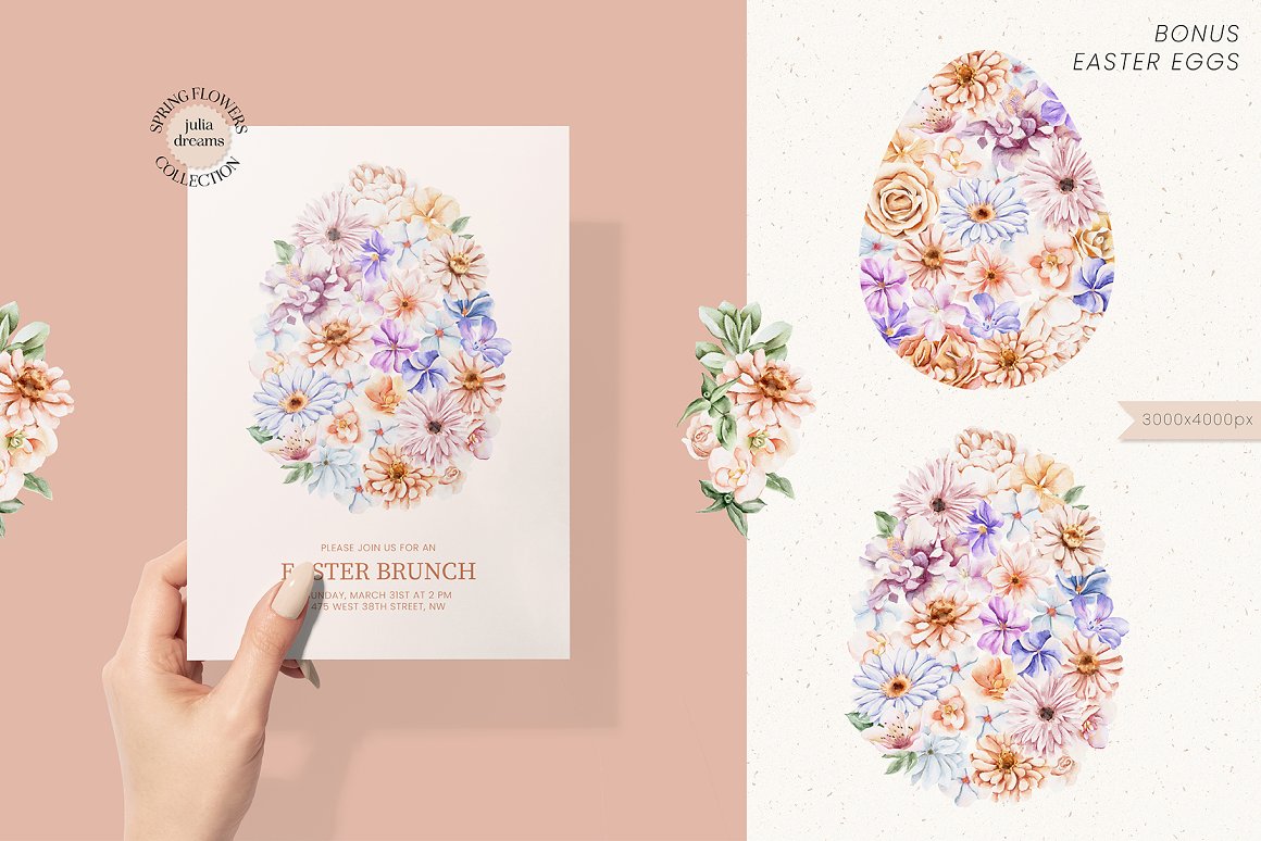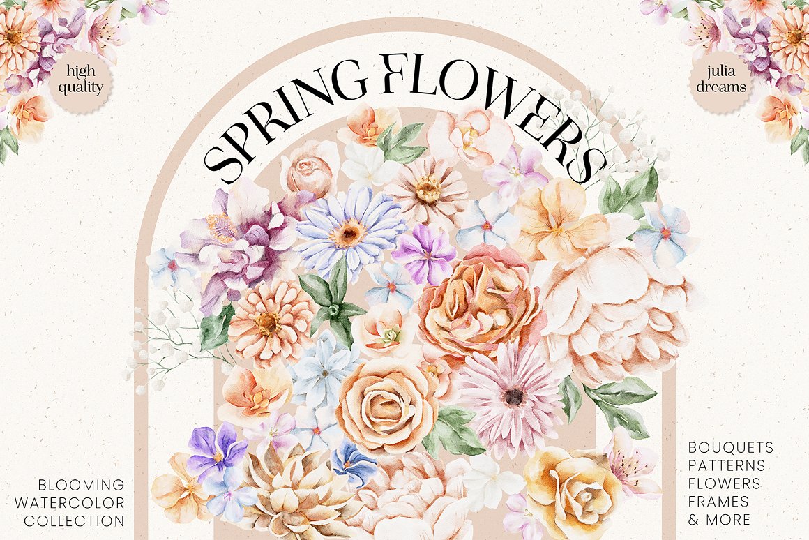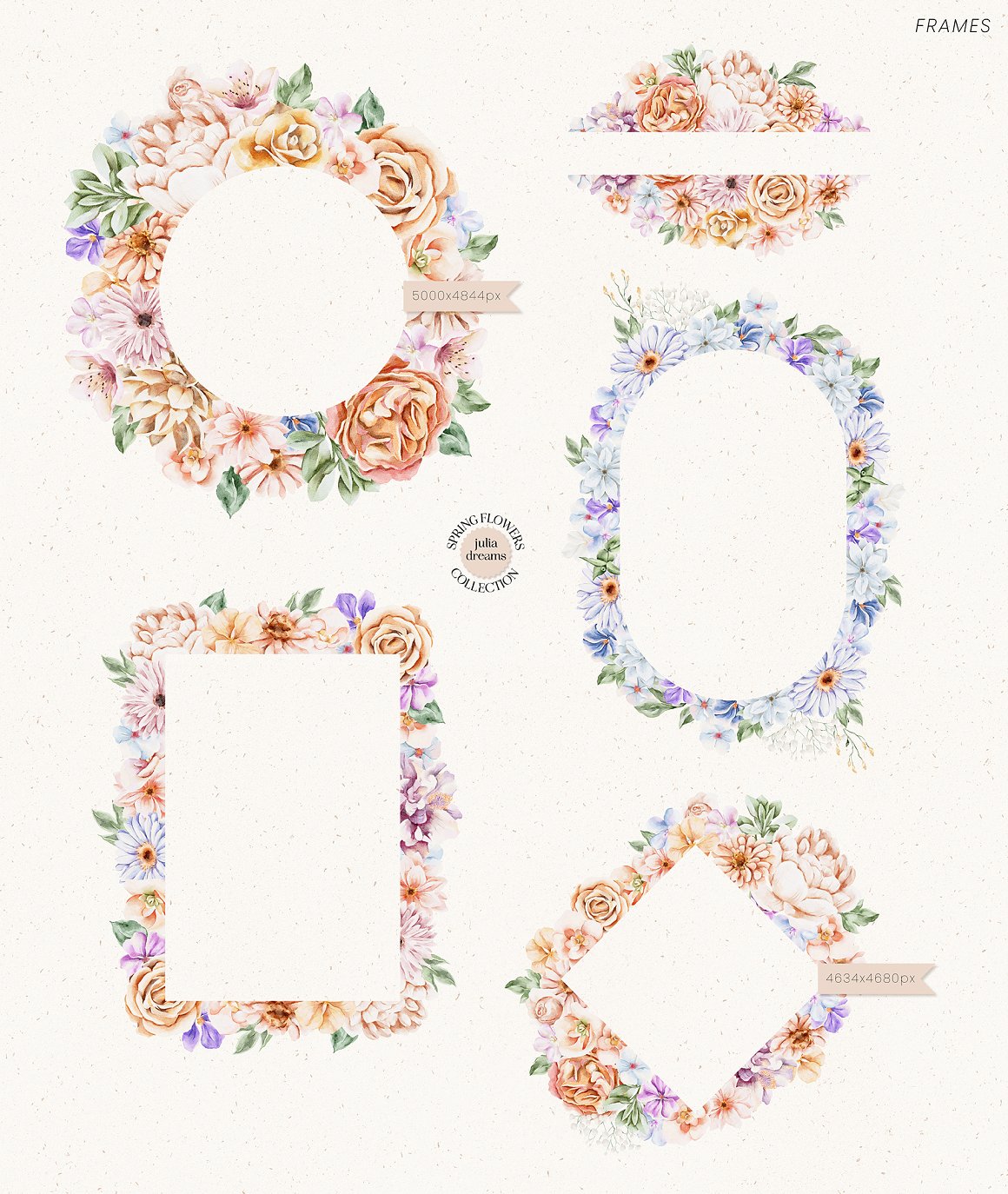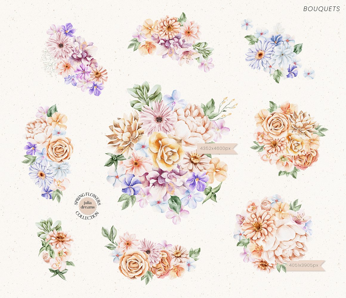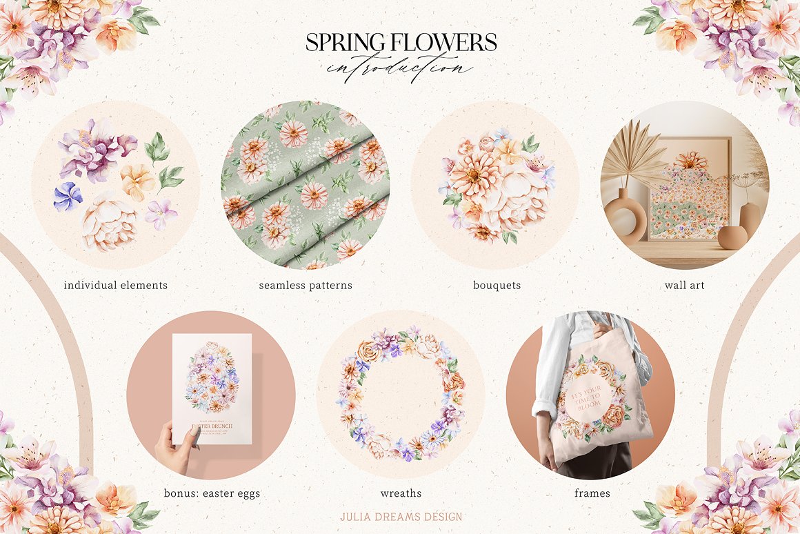 Spring Flowers Collection great for wedding invites, wall art prints, greeting cards, gifts, logo, posters, cards, branding, planners, covers, social media accounts, wrapping paper, wallpaper, fabric, scrapbooking, stickers, sites, blogs, invitations and for many more.