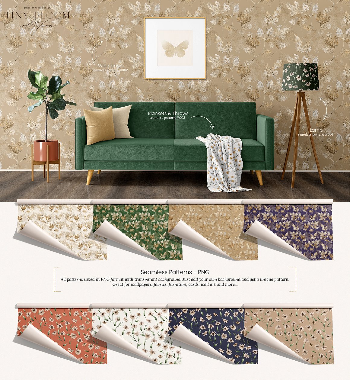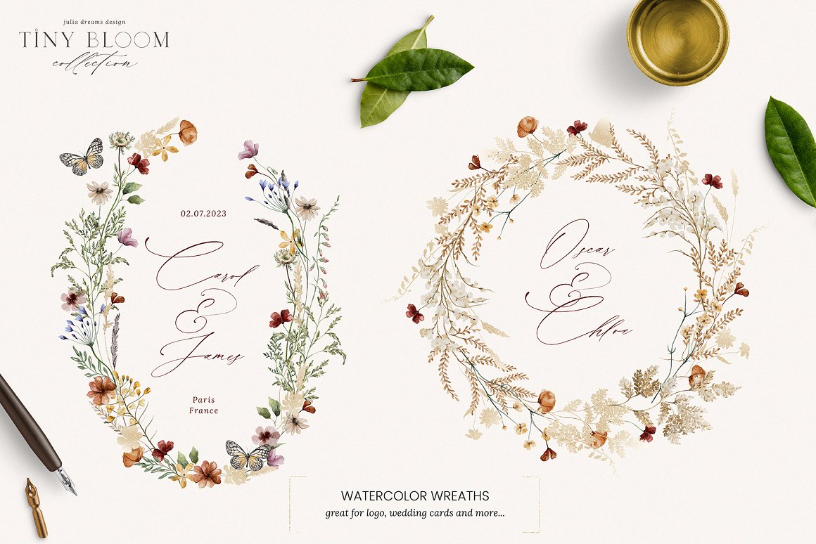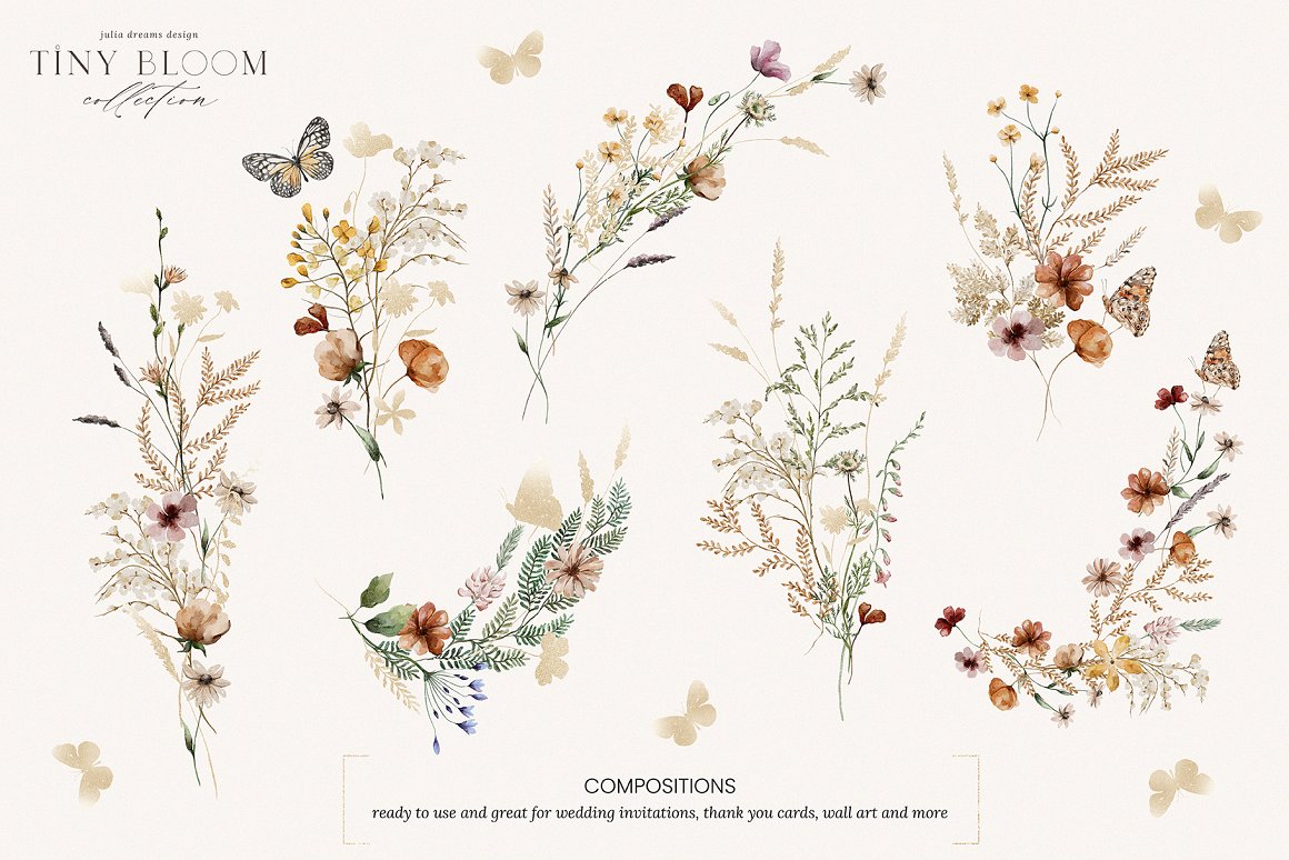 Tiny Bloom Collection great for wedding invites, wall art prints, greeting cards, gifts, logo, posters, cards, branding, planners, covers, social media accounts, wrapping paper, wallpaper, fabric, scrapbooking, stickers, sites, blogs, invitations and for many more.