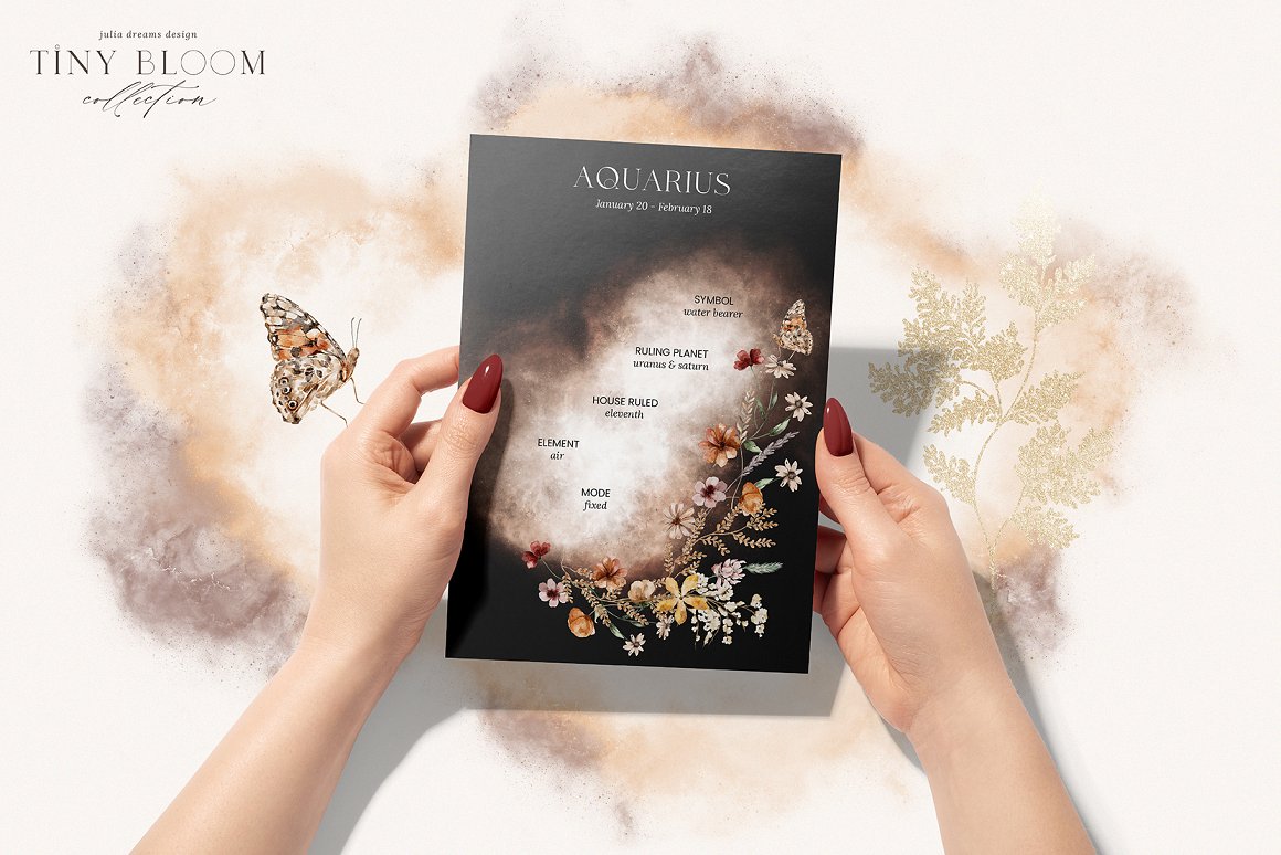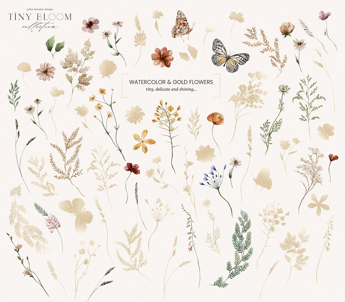 Tiny bloom is a collection of tender and absolutely tiny watercolor flowers. Hand painted with love watercolor botanical elements can perfectly complement your project and help create a sophisticated, restrained and fashionable style.