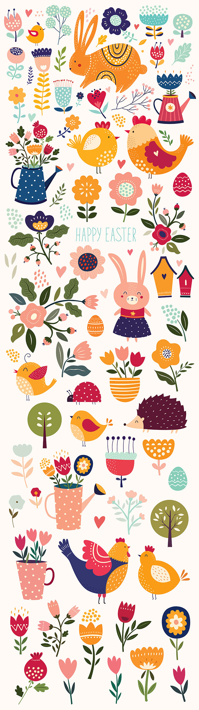 Decorative & cute vector illustration bundle with spring or Easter theme
