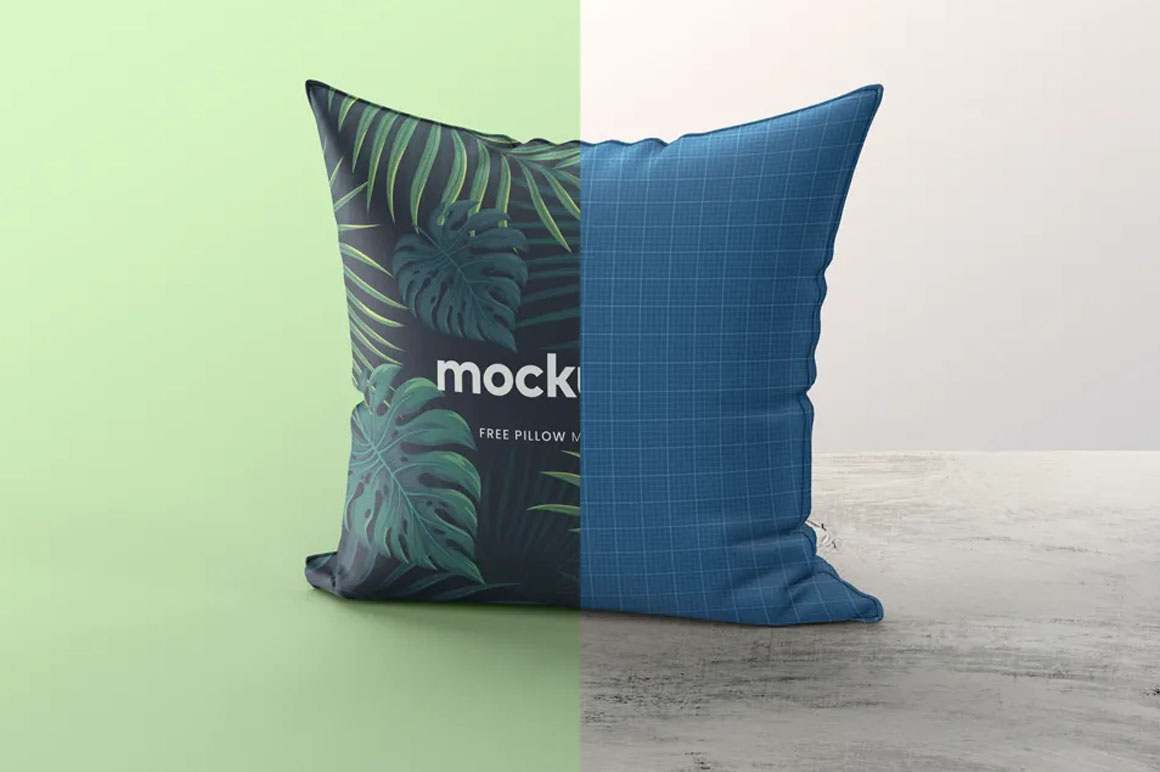 Standing square pillow – presentation mock-up template from mockup-plus. Download and enjoy 😉
