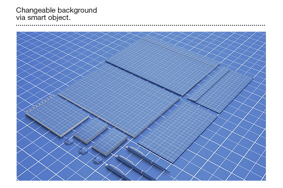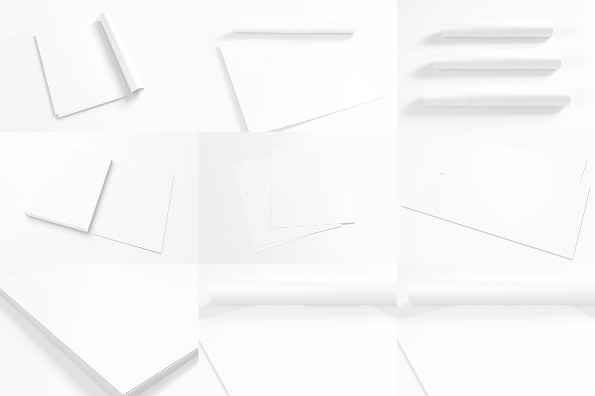 - 13 different mockup sets: stationery, business cards, magazine, paper bags, catalog…