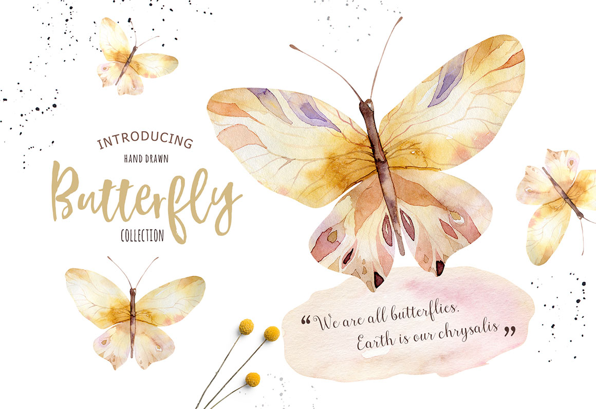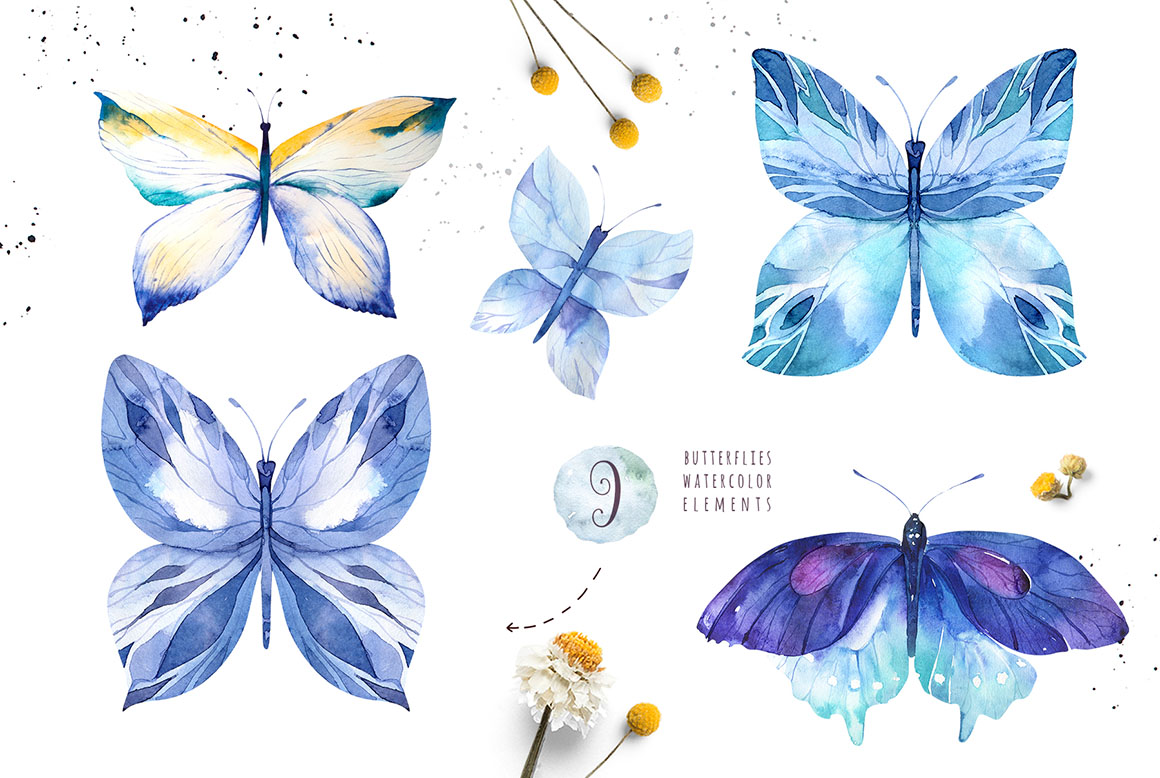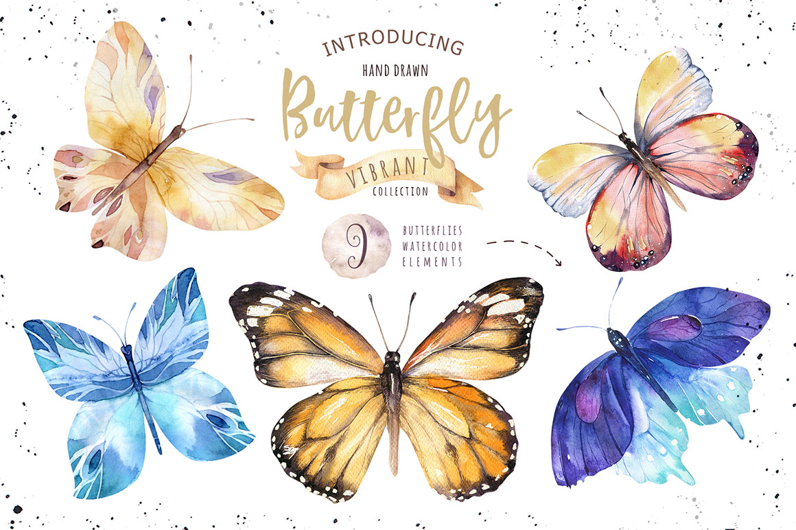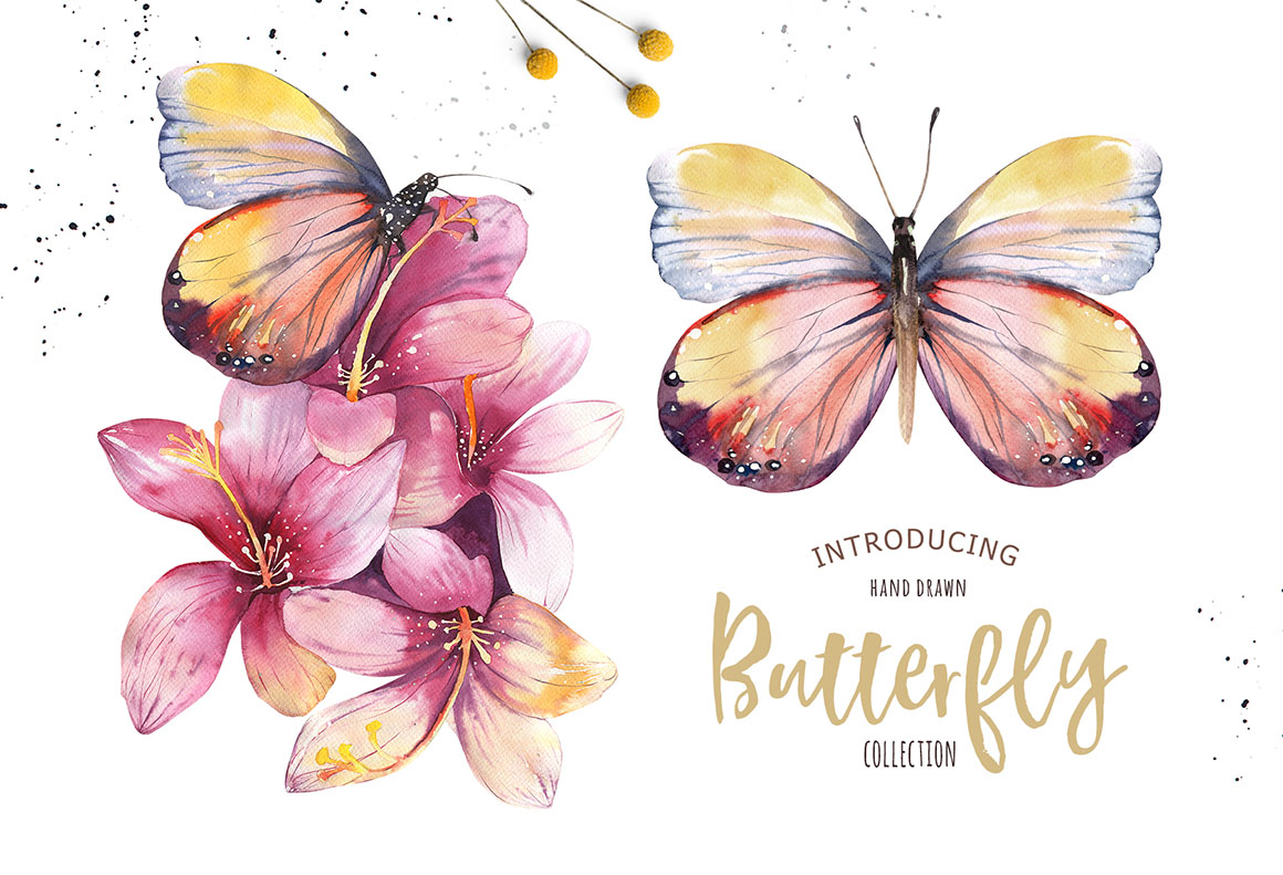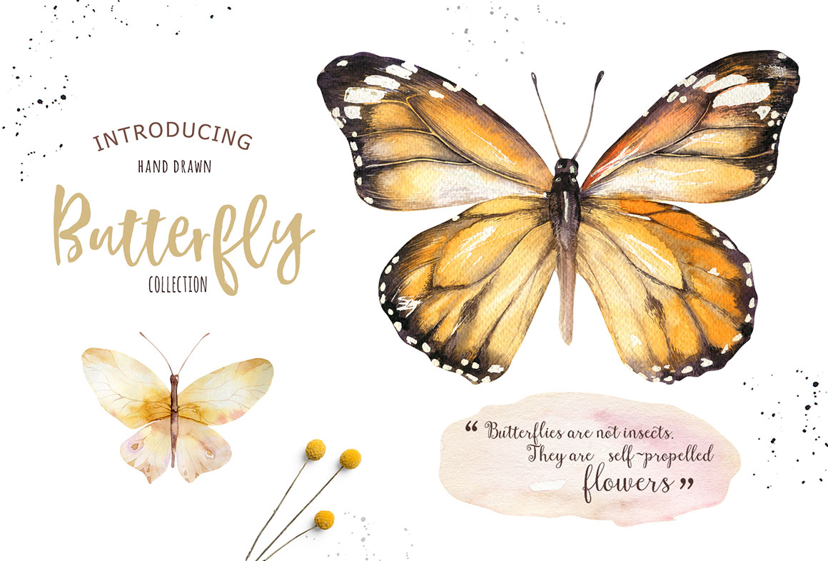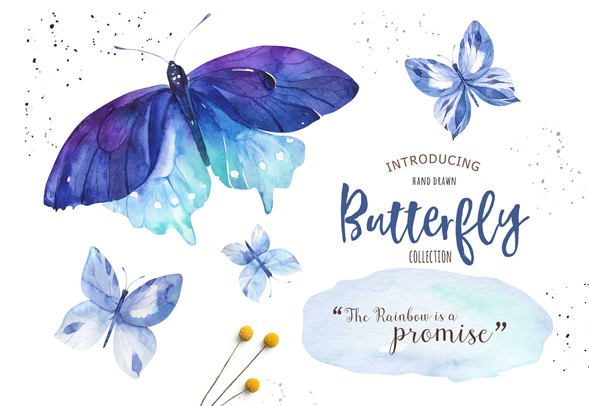 This set of high-quality hand-painted watercolor butterfly elements. Perfect graphic for DIY, wedding invitations, greeting cards, quotes, blogs, posters and more.