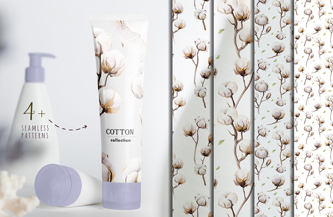 - 5 cotton branches (300 dpi, PNG, transparent background)