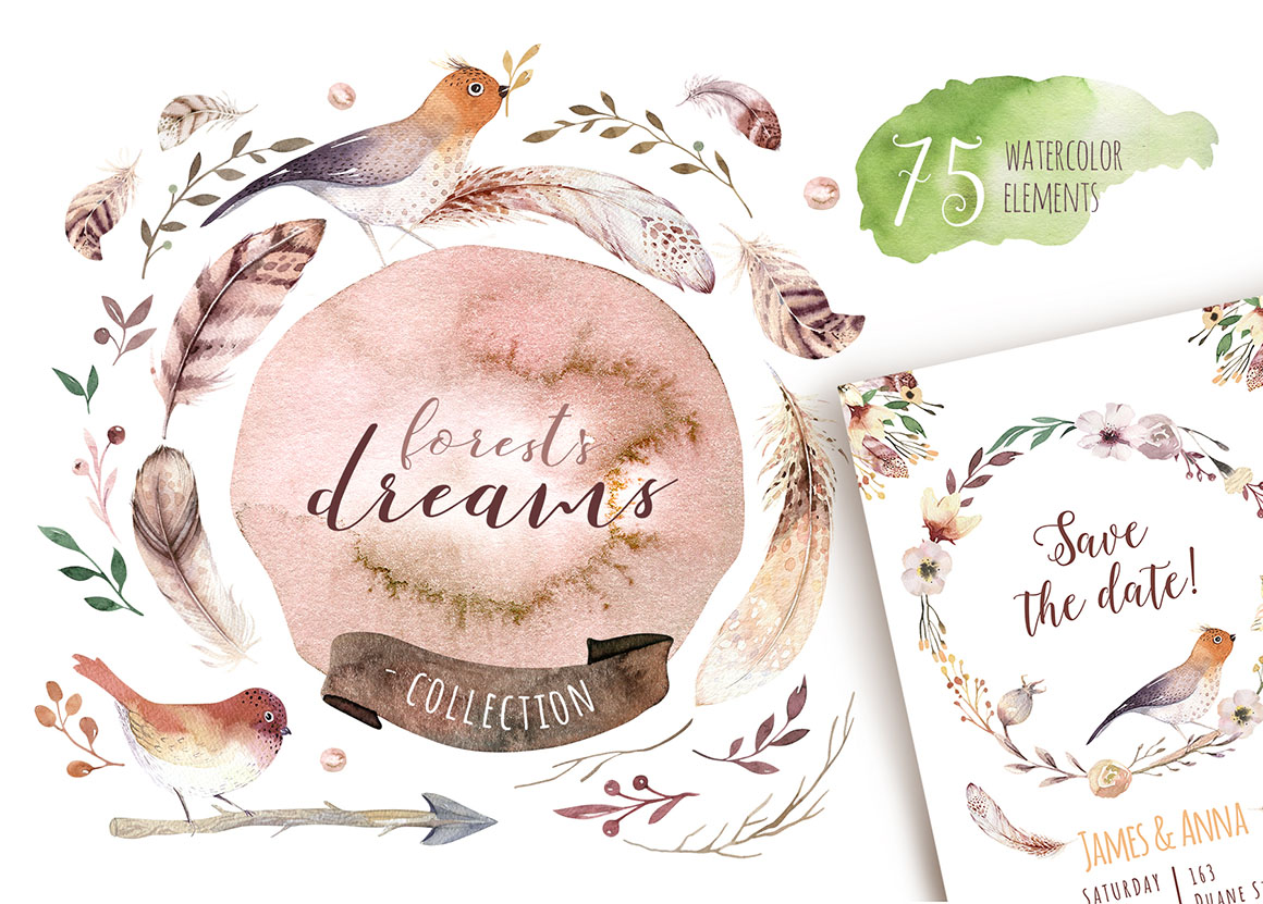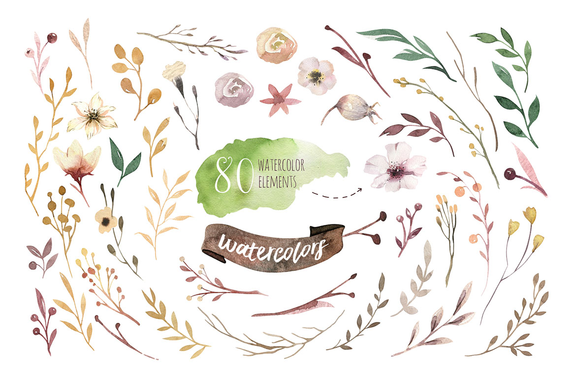 Normally, these watercolor illustrations would cost you $50 (without extended licenses), but for a limited time only, you can get this unique collection for $9!
