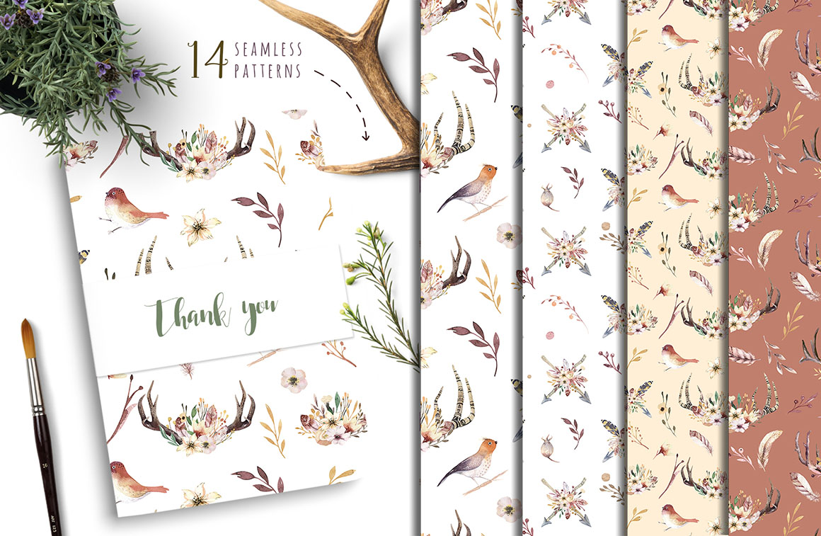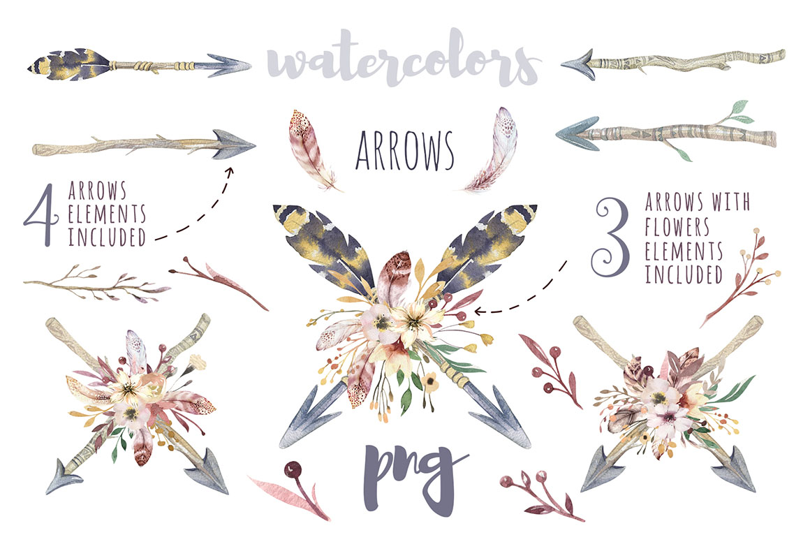 If you are looking for modern, creative & BOHO style watercolor illustrations or graphic ellements then you are at the right place because here you will get a great collection of 4 amazing illustration sets for your new artistic projects. These graphics are in hi-res PNG or JPG formats so all are great for your new web design or any print design projects. Enjoy 😉