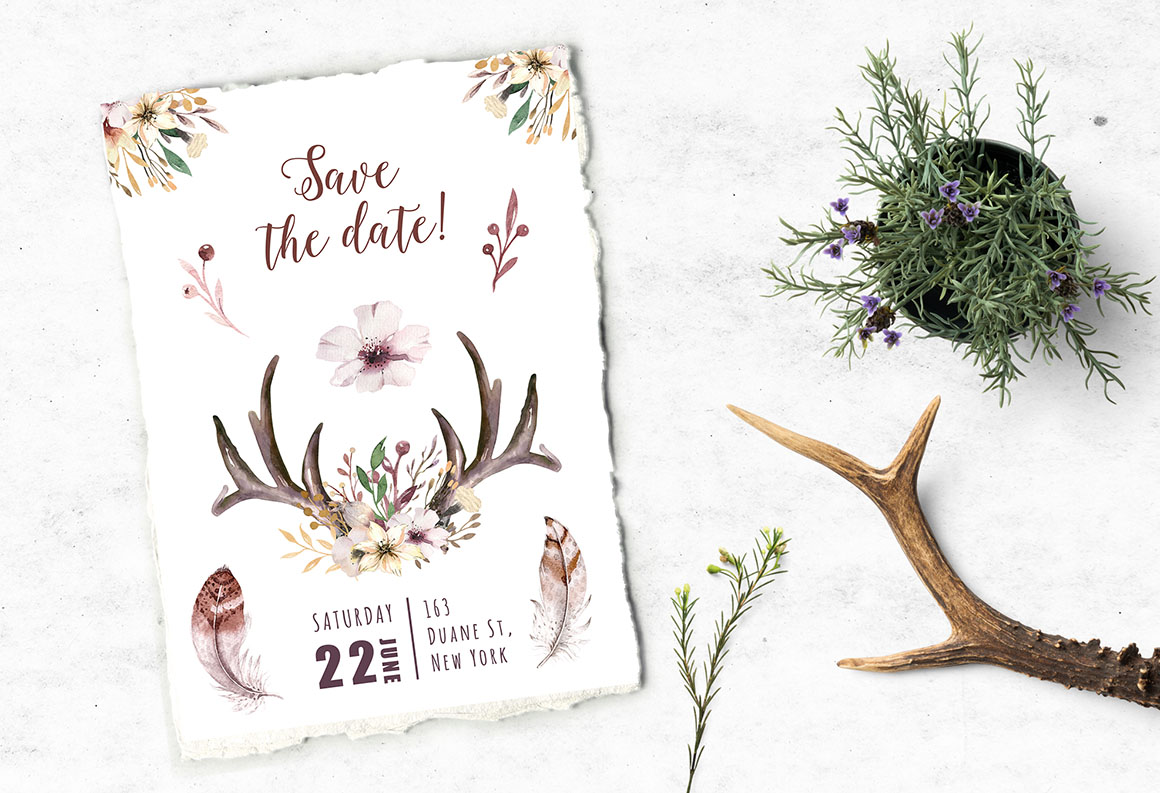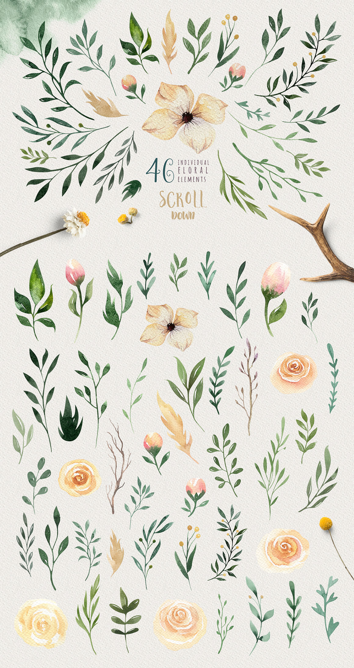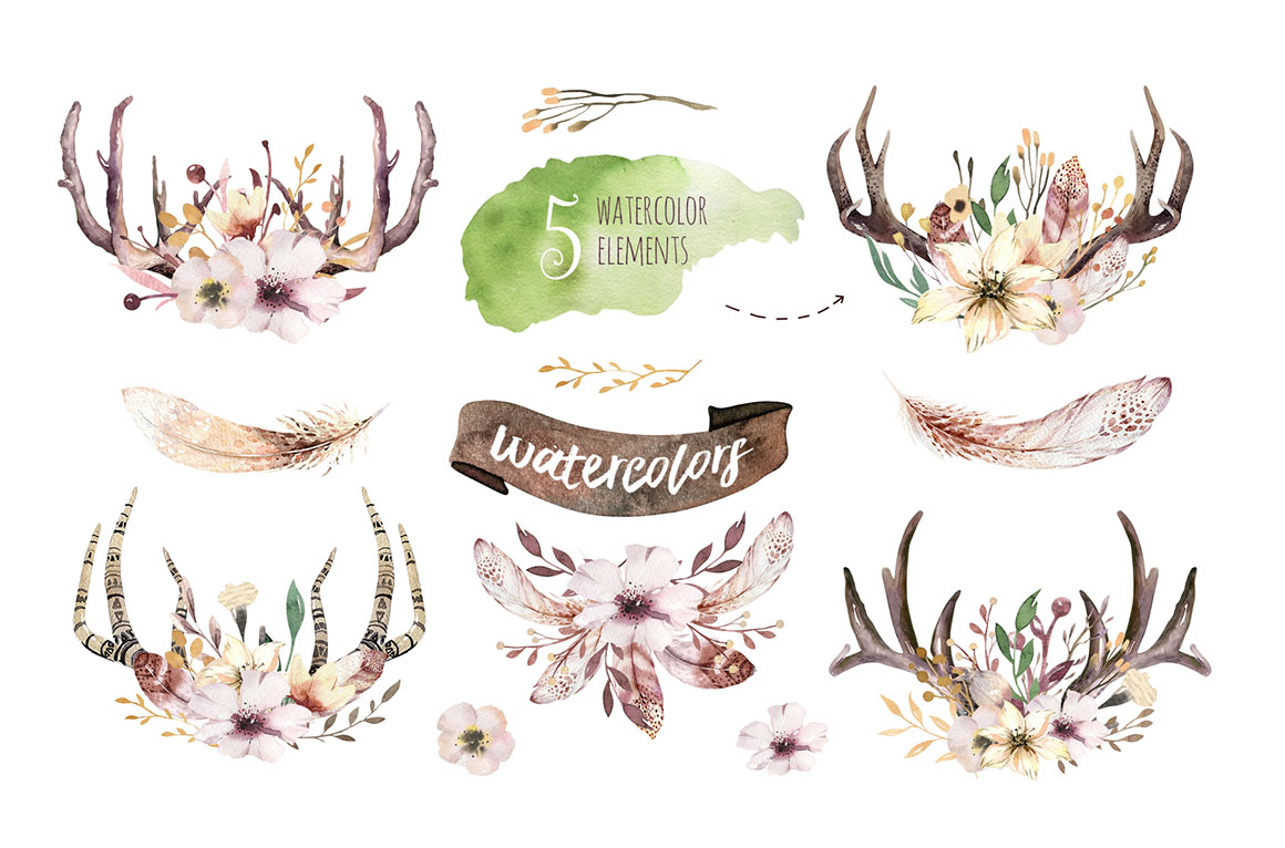 This set of high quality hand painted watercolor forest floral elements.Boho style. Perfect graphic for DIY, wedding invitations, greeting cards, quotes, blogs, posters and more.