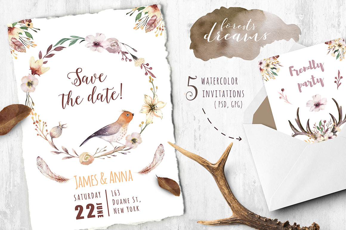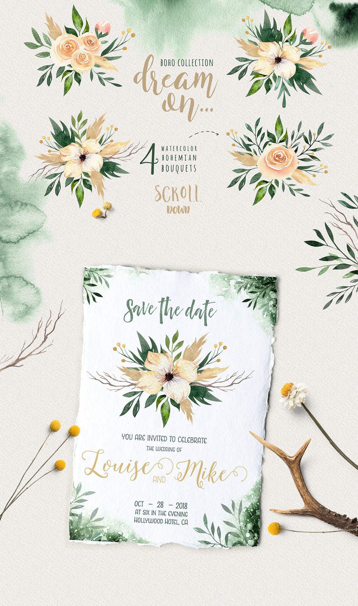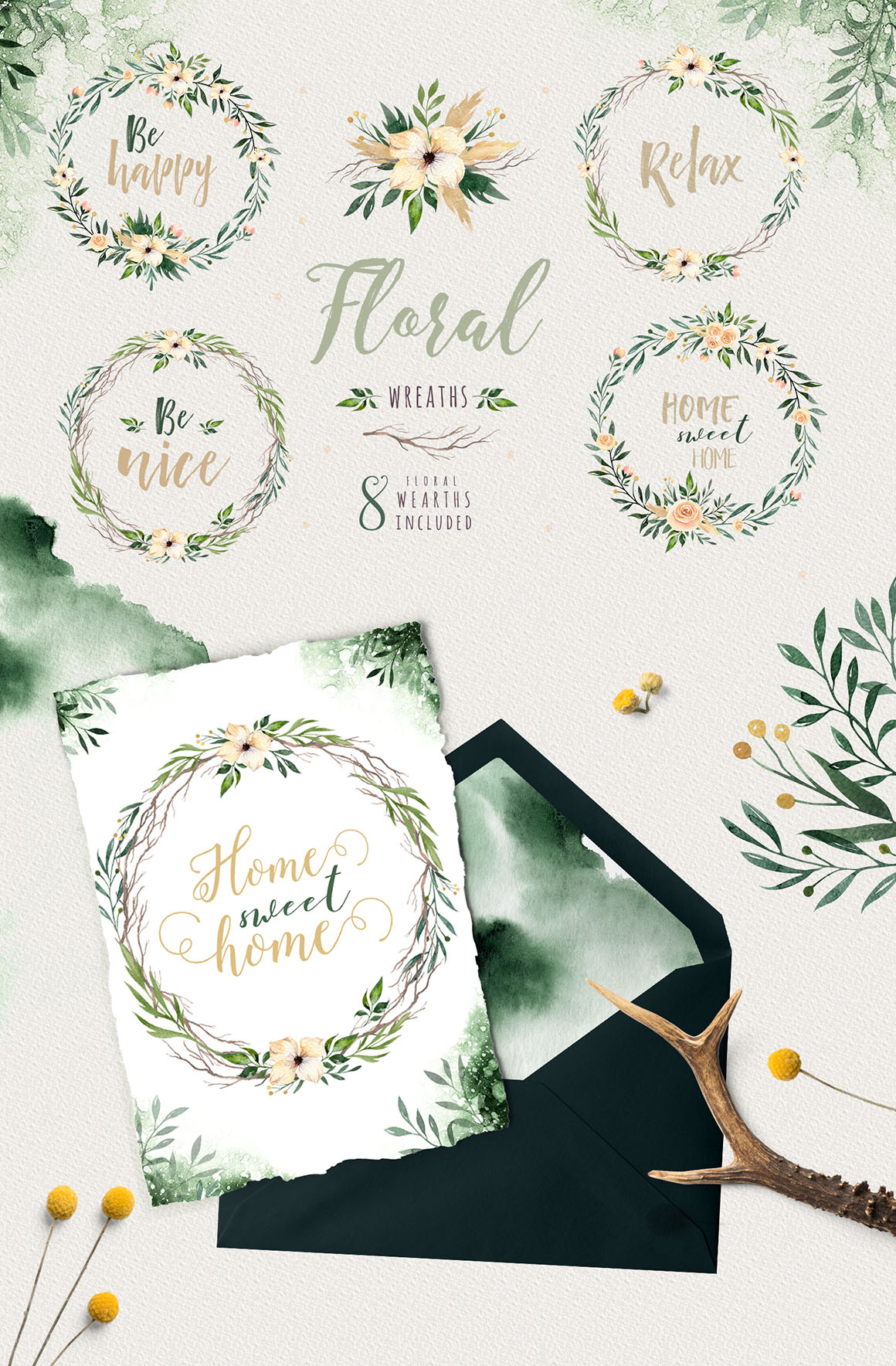 This set of high quality hand painted watercolor forest floral elements.Boho style. Perfect graphic for DIY, wedding invitations, greeting cards, quotes, blogs, posters and more.