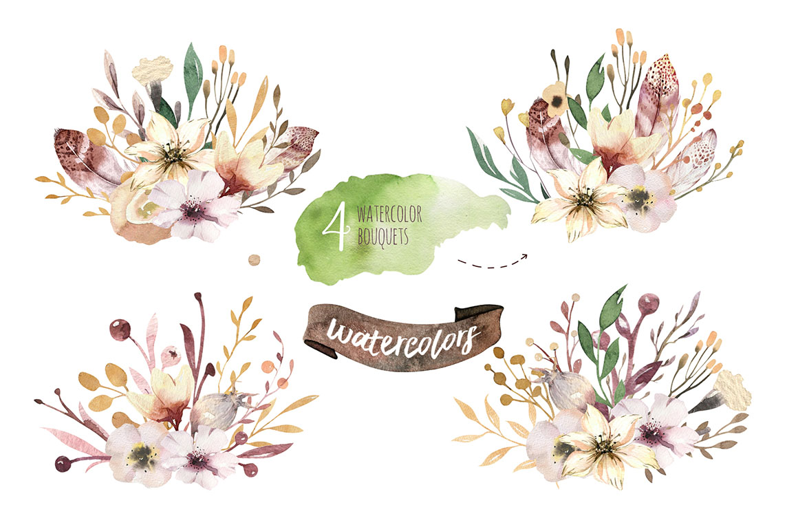 - Creative & decorative watercolor illustrations – 4 great sets in 1 bundle!