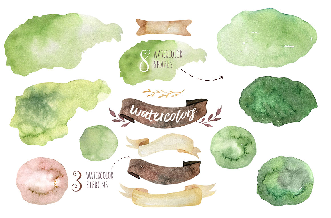 - 9 watercolor shapes ( PNG, 300 dpi, transparent background)