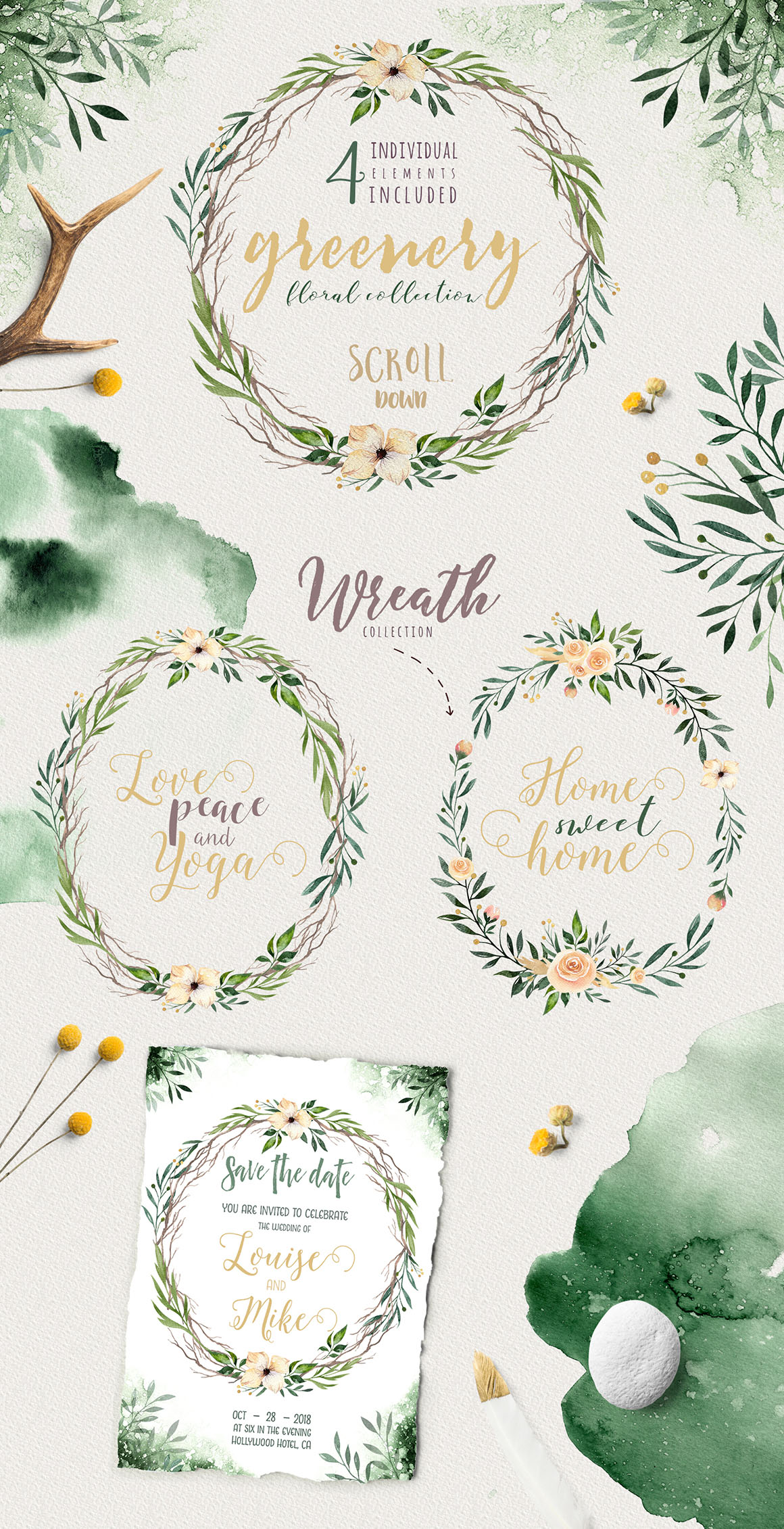 This set of high quality hand painted greenery watercolors. Perfect graphic for DIY, wedding invitations, greeting cards, quotes, blogs, posters and more.