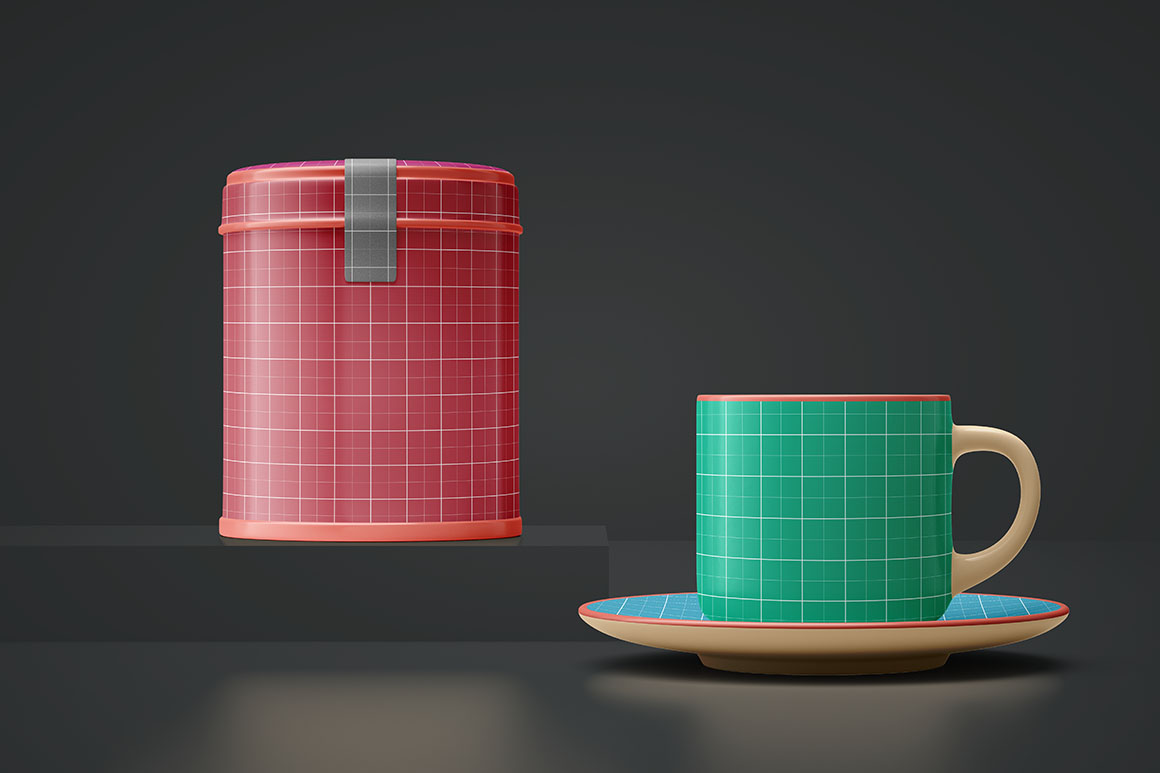 Tea set with cup & packaging – presentation mock-up template in PSD format from Pino tage. Download & enjoy 😉