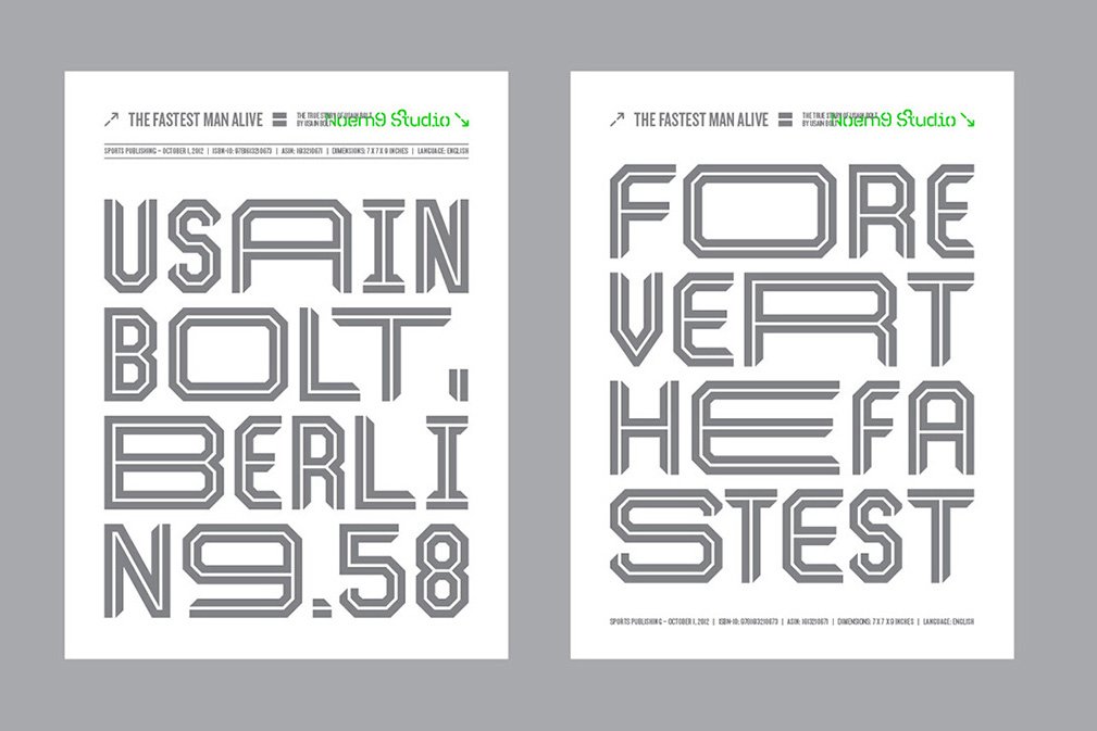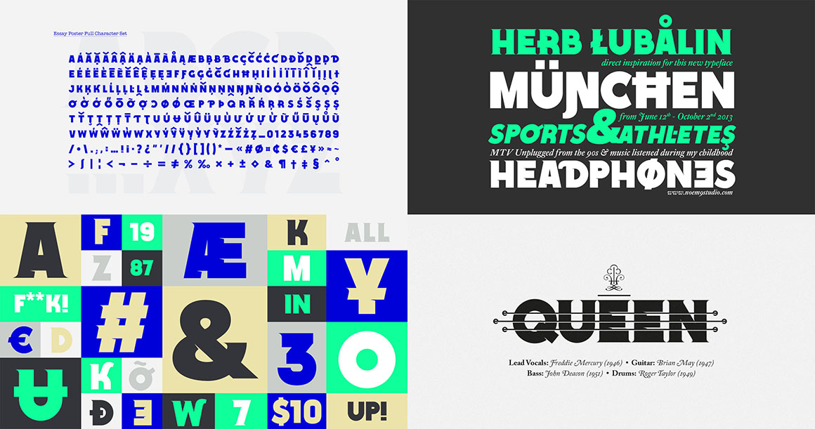 Essay was born from an afternoon in Berlin, looking at old book covers. Inspired by Herb Lubalin, Athletics & Rock music. Its details relate with speed & punk styles but keeping the main structure intact. Works perfectly as main/bold typography combined with some serif typefaces.