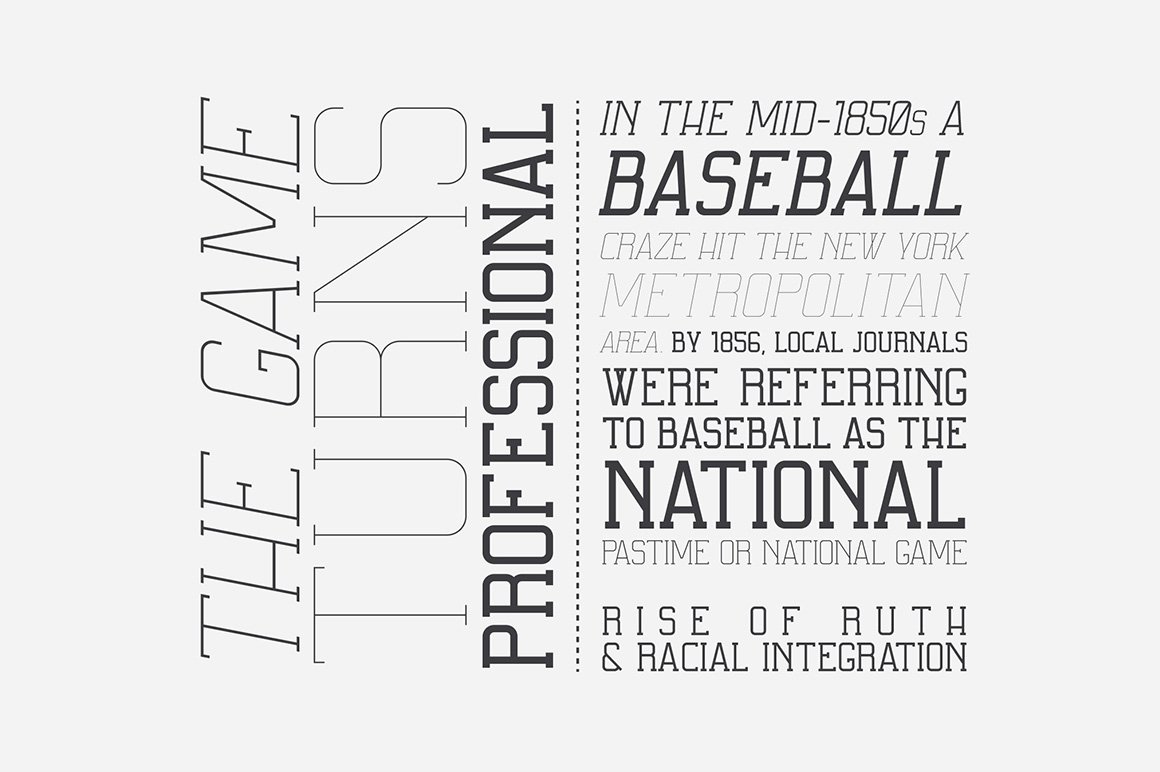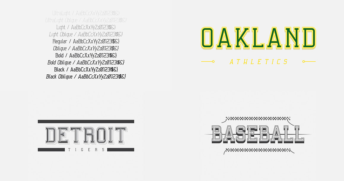 Slab Serif that uses details often seen in College sports and ball games. It was inspired by the film ‘MoneyBall’, Directed by Bennet Miller.