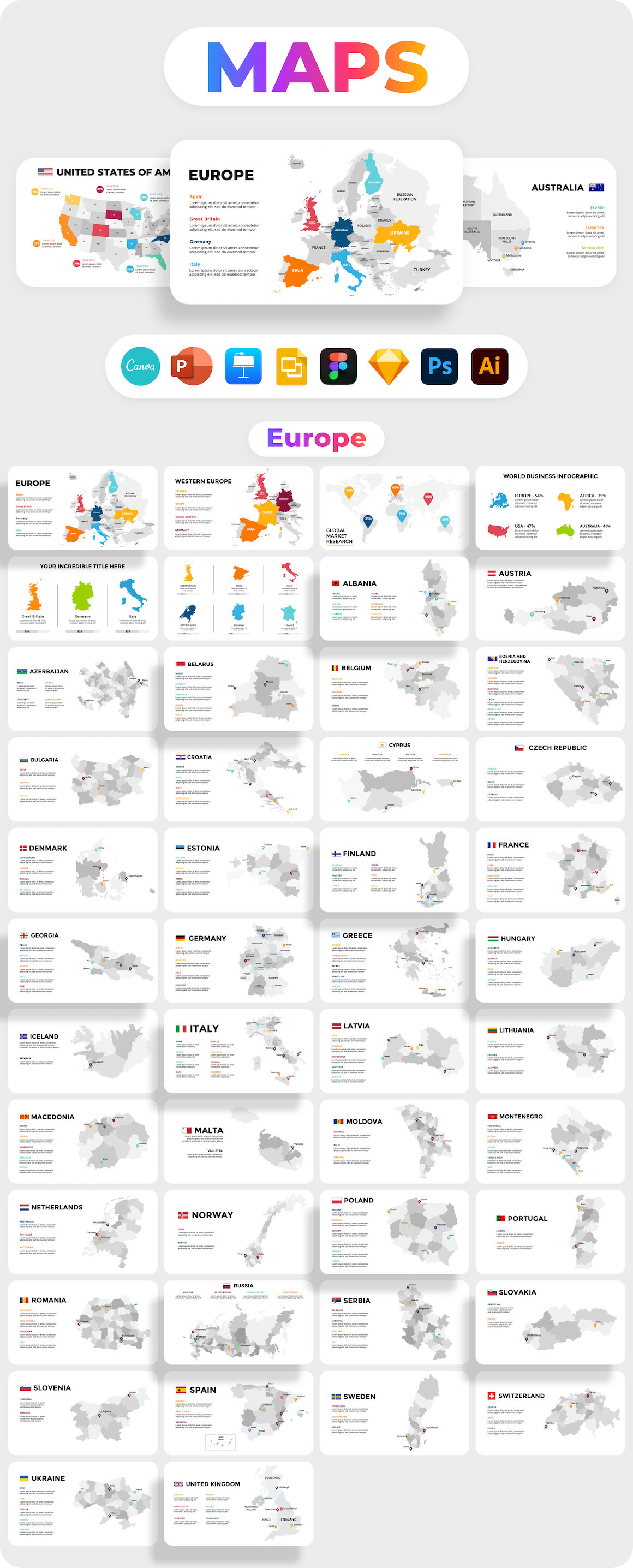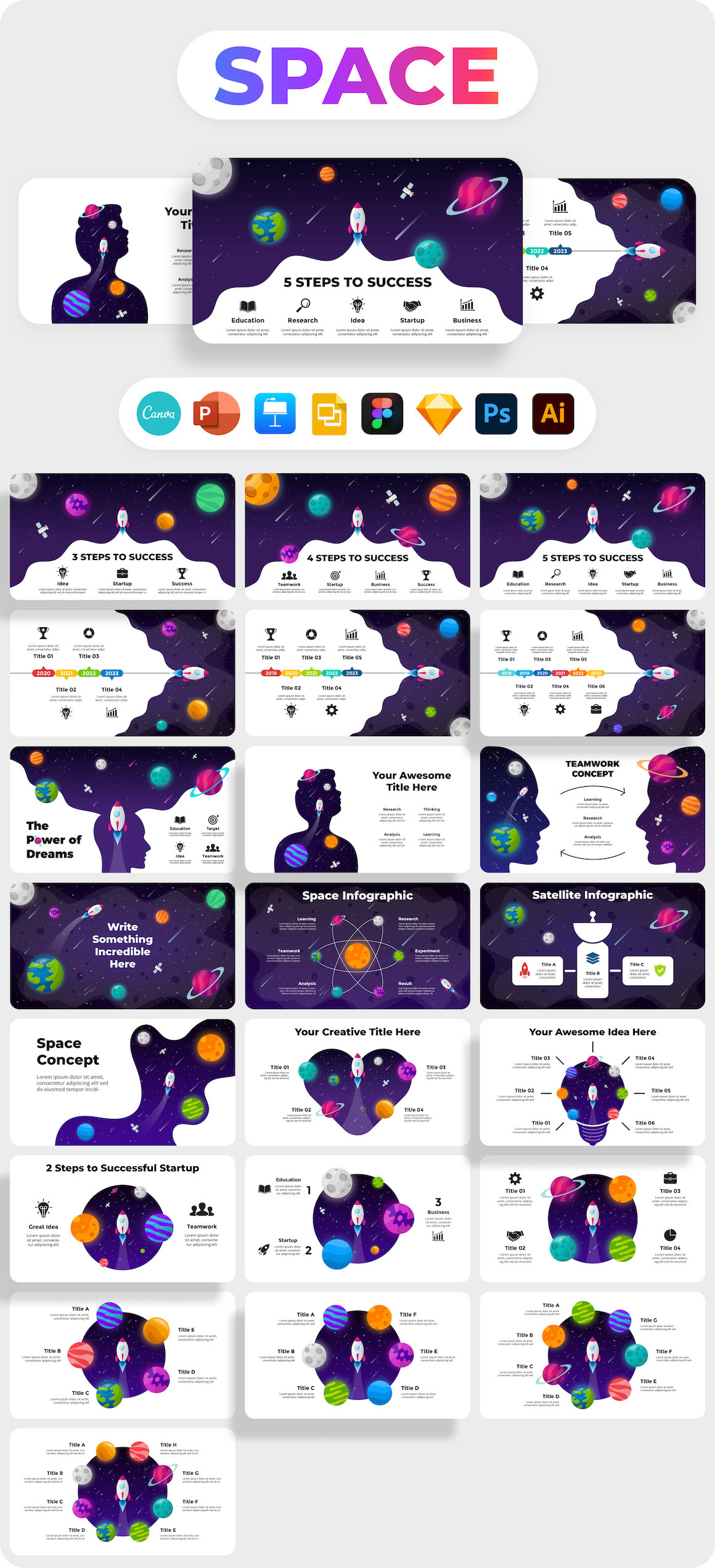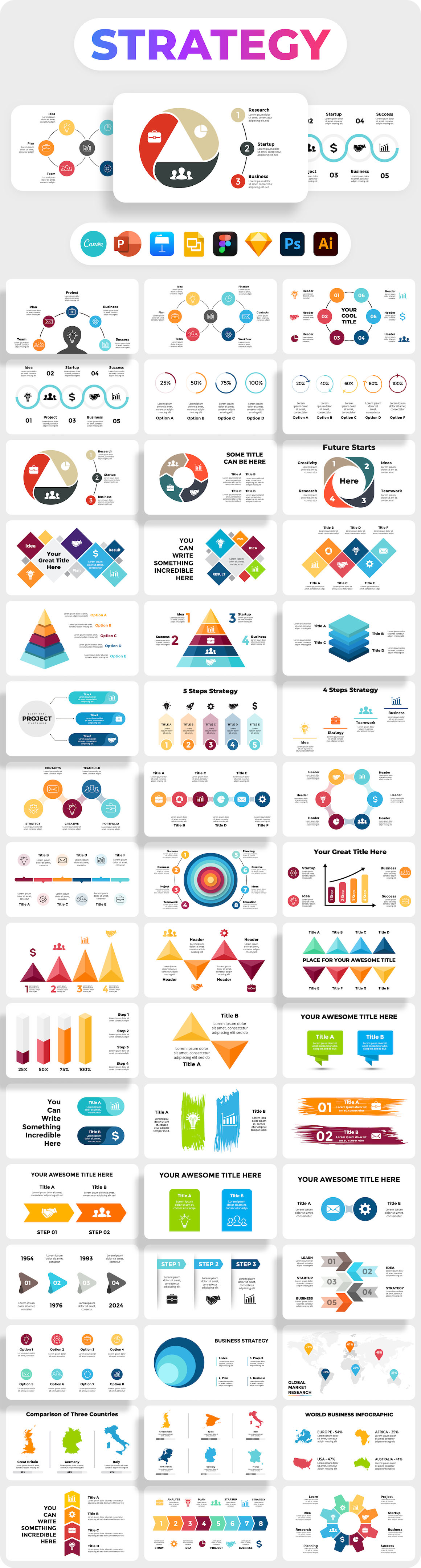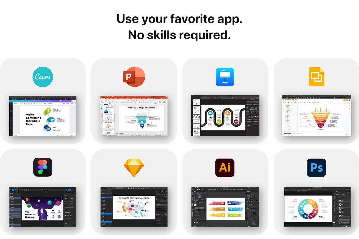 - All elements are very easy to edit in PowerPoint, Keynote, Google Slides, Canva, Figma, Sketch, Psd & Ai.