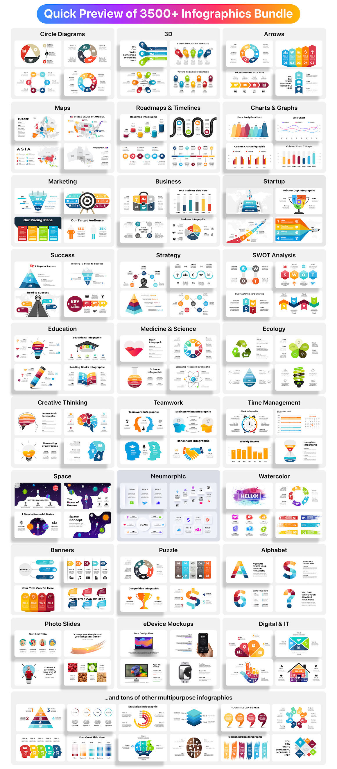 - 3500 high-quality infographics, presentation templates, mockups, maps and tons of other content!