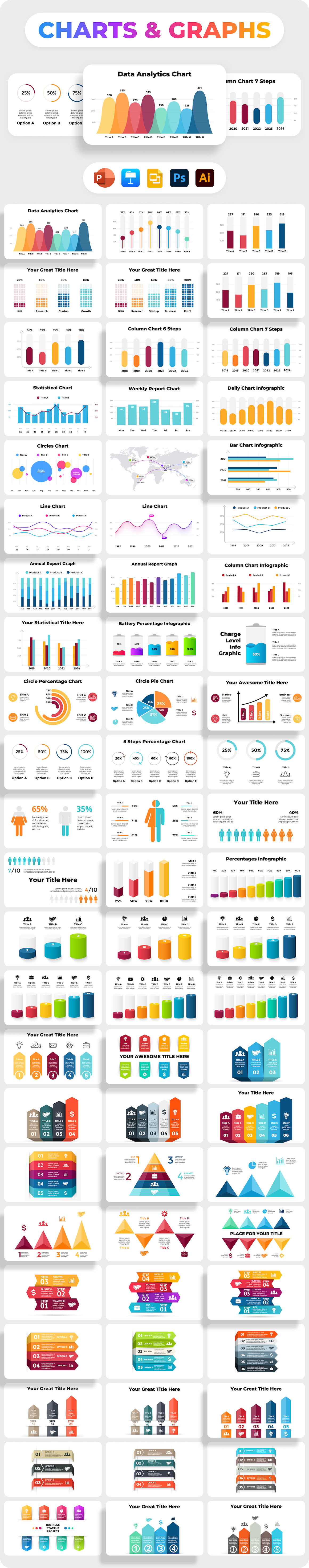 Looking for eye-catching infographics & presentation templates to visualize your idea? Our Wowly Infographics Bundle has everything you need! This massive collection includes 3500 high-quality infographics, presentation templates, mockups, maps and tons of other content to help you present your data in a clear and visually appealing way. All templates are incredibly versatile and can be customized in PowerPoint, Keynote, Google Slides, Canva, Figma, Sketch, Psd & Ai.