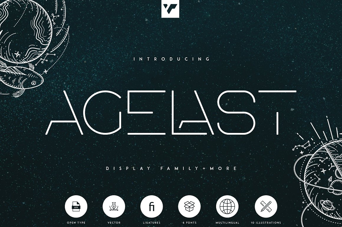 Agelast is clean, futuristic typeface with 6 fonts, 10 breathtaking illustrations, 71 photoshop styles and multilingual support. It’s a very versatile font that works great in large and small sizes.