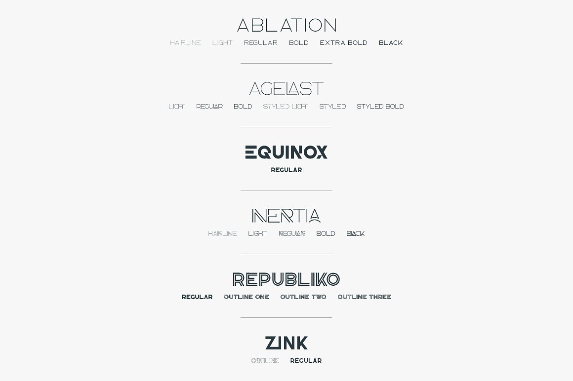 Inertia is futuristic, logo typeface loaded with alternate glyphs, ligatures, 5 weights and multilingual support. It’s a very versatile font that works great in large and small sizes.