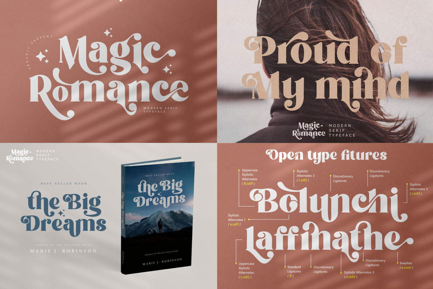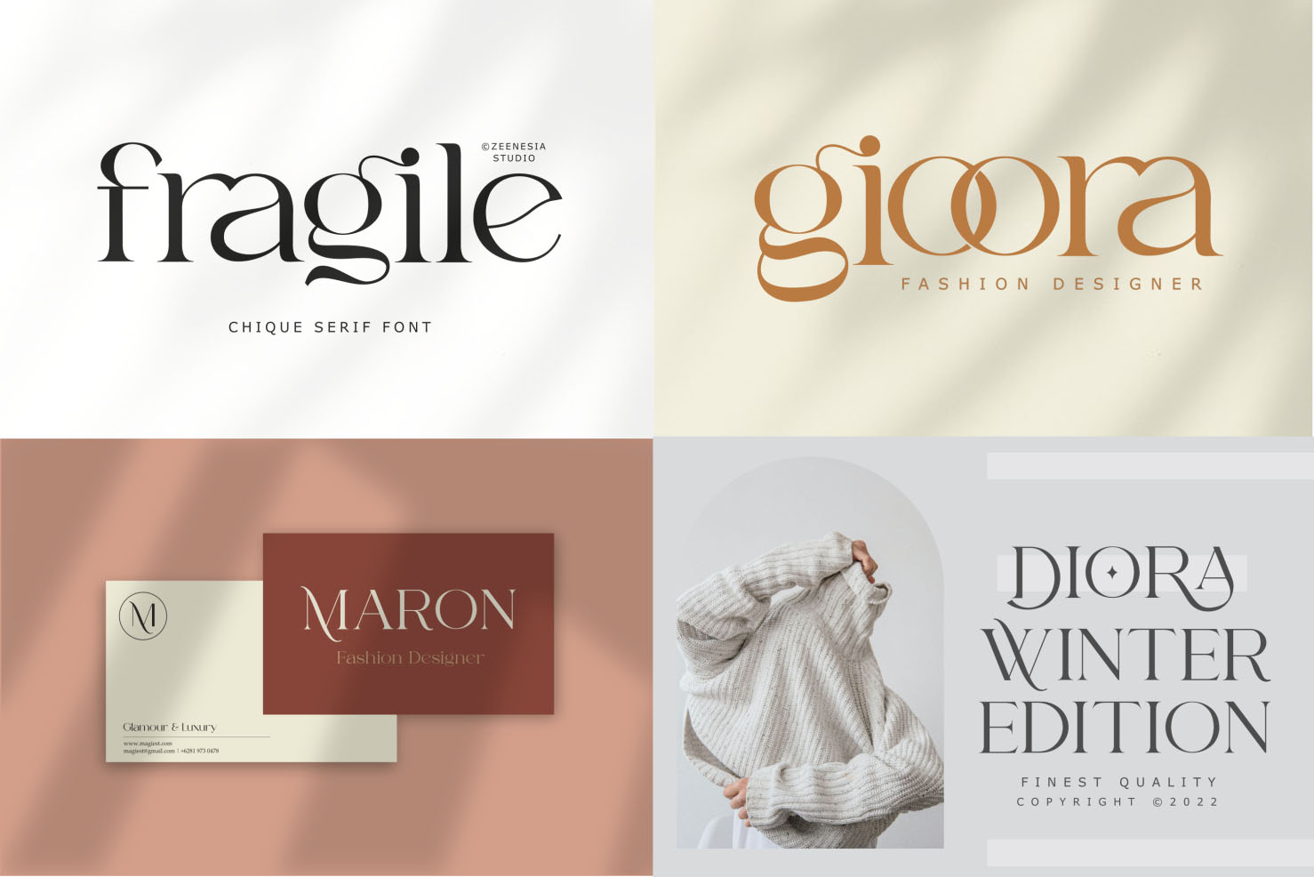 Trendy, elegant, luxury, futuristic & retro style serif & sans display fonts for your fancy projects. Elegant, artistic and unique style on these fonts will be great for any branding project. Lot of alternates and ligatures will help you to create unique and original logo design or website header! Enjoy 🙂