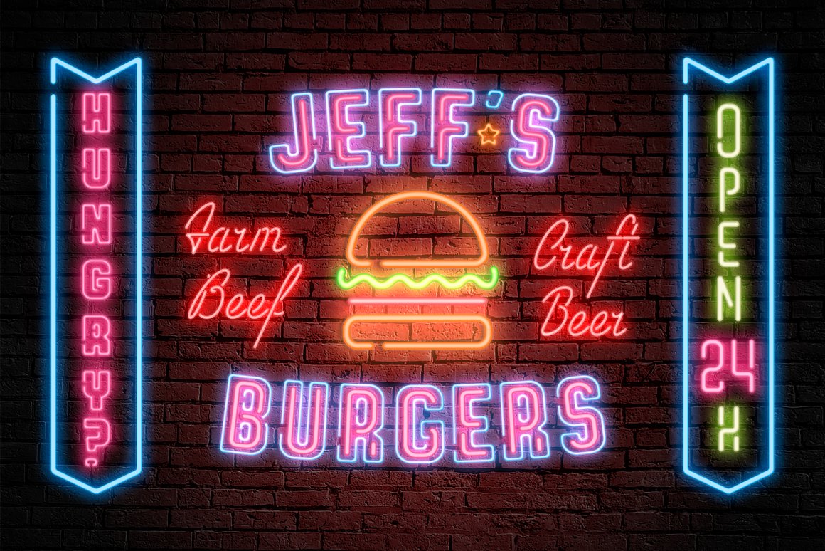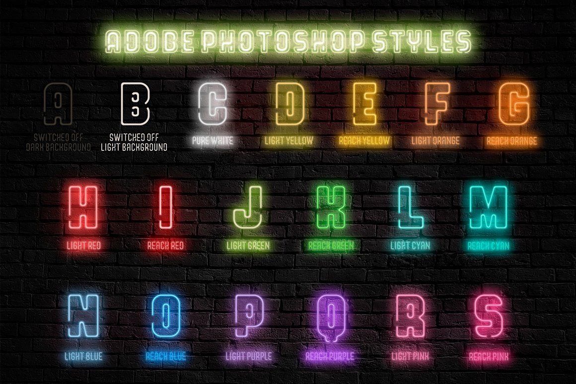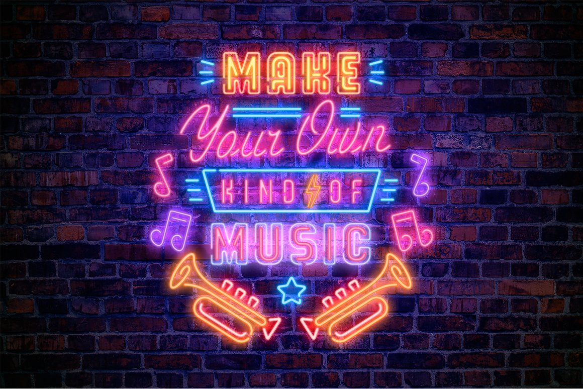 Proudly introducing you The Neonica Toolbox – a complete collection to creating awesome neon designs! This is a complete collection which included the fonts, decorations, illustrations, Adobe Photoshop styles and HQ background textures as brick or rusty grunge walls. Create awesome graphics for few simple steps!