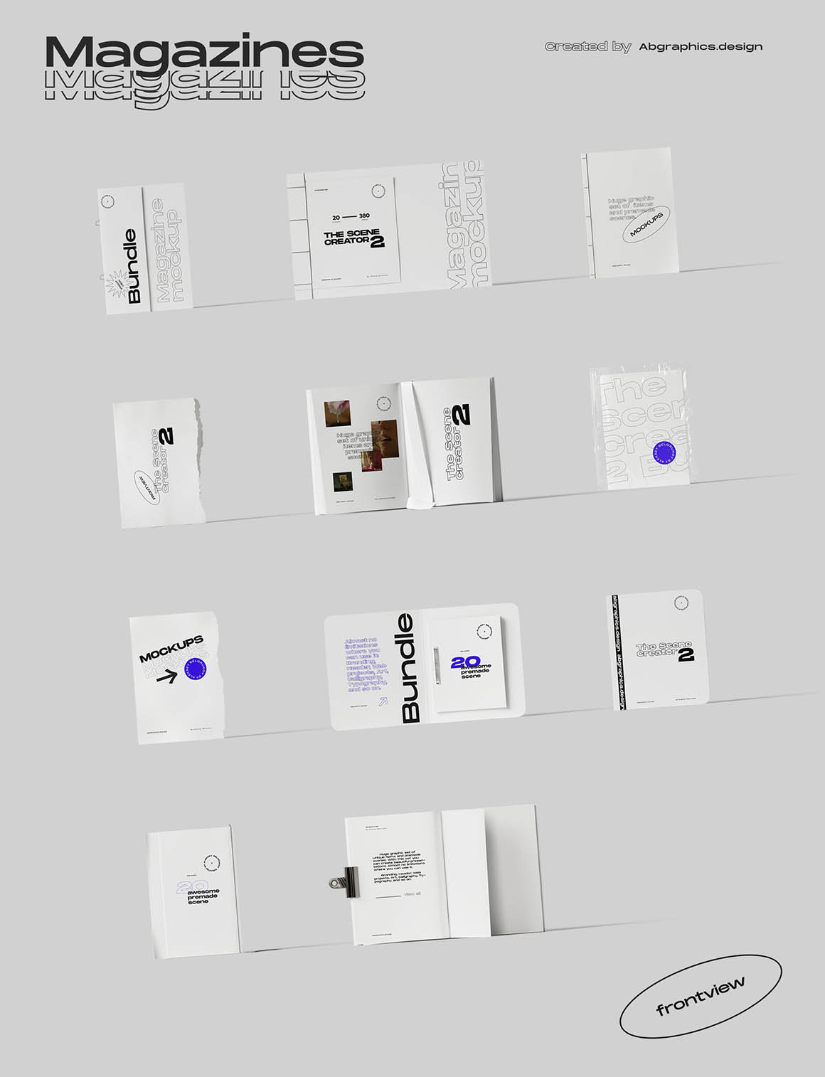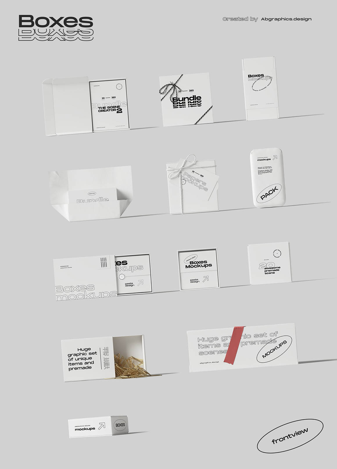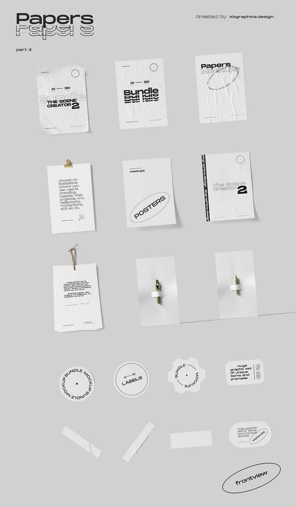 If you are looking for some professional 3D style scene creator for Adobe Photoshop with attractive FRONT view then you are at the right place because here you will get amazing bundle with 20 premade scenes & 380 unique items or mockups. Great for your branding, headers, web projects, art projects, typography or any print projets!