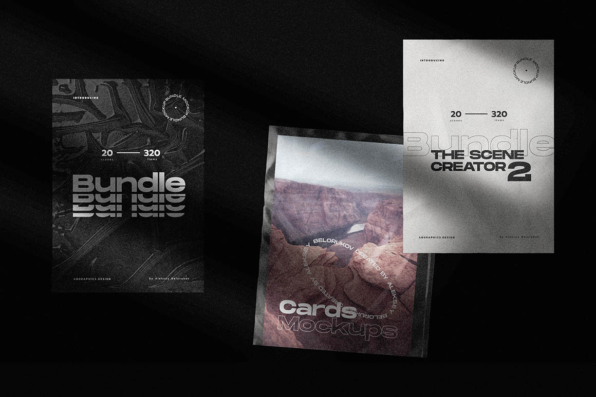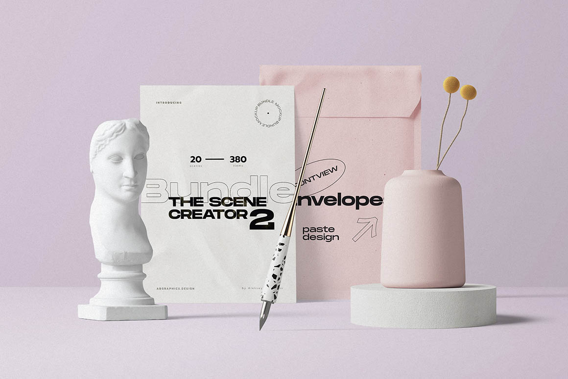 All these creative scenes, mockups and items are from Aleksey Belorukov. You can just play with all these layered scenes & items and create amazing and unique designs! With this set you can create beautiful presentations. Almost no limitations where you can use it: Branding, Header, Web projects, Social Media, Presentations, Art, Calligraphy, Typography, and so on.