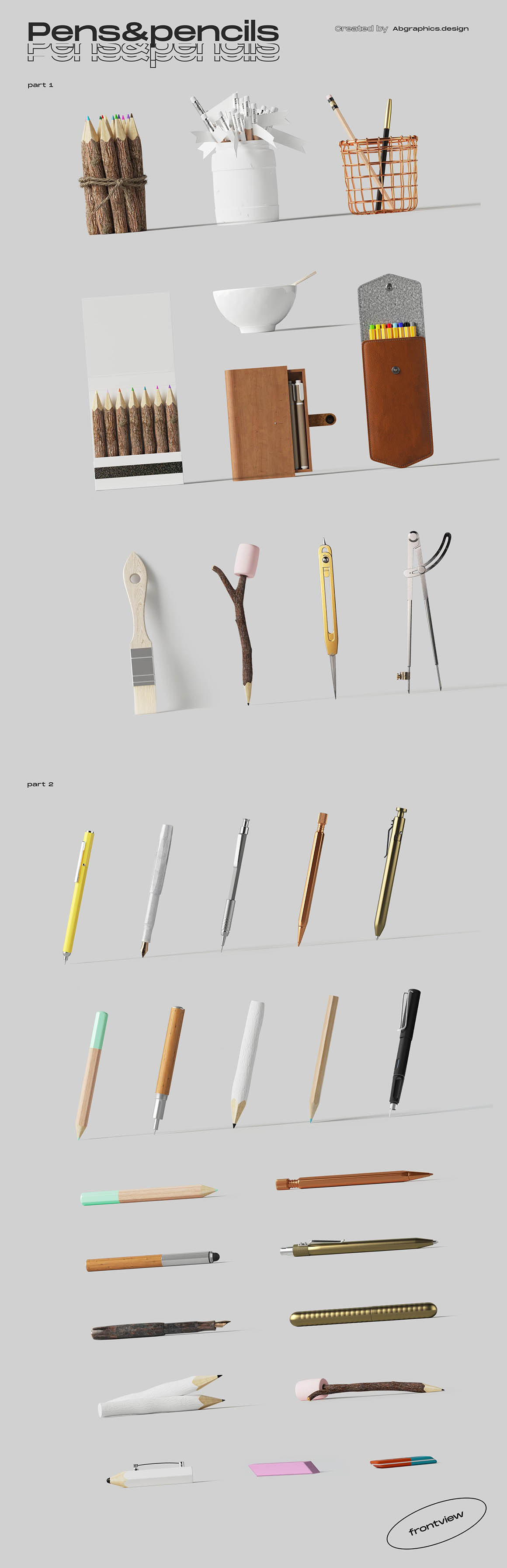 - Just double click to smart object and paste yor design (pens&pencils items – You can not change the design. If you want to do it, you just need to do it yourself)