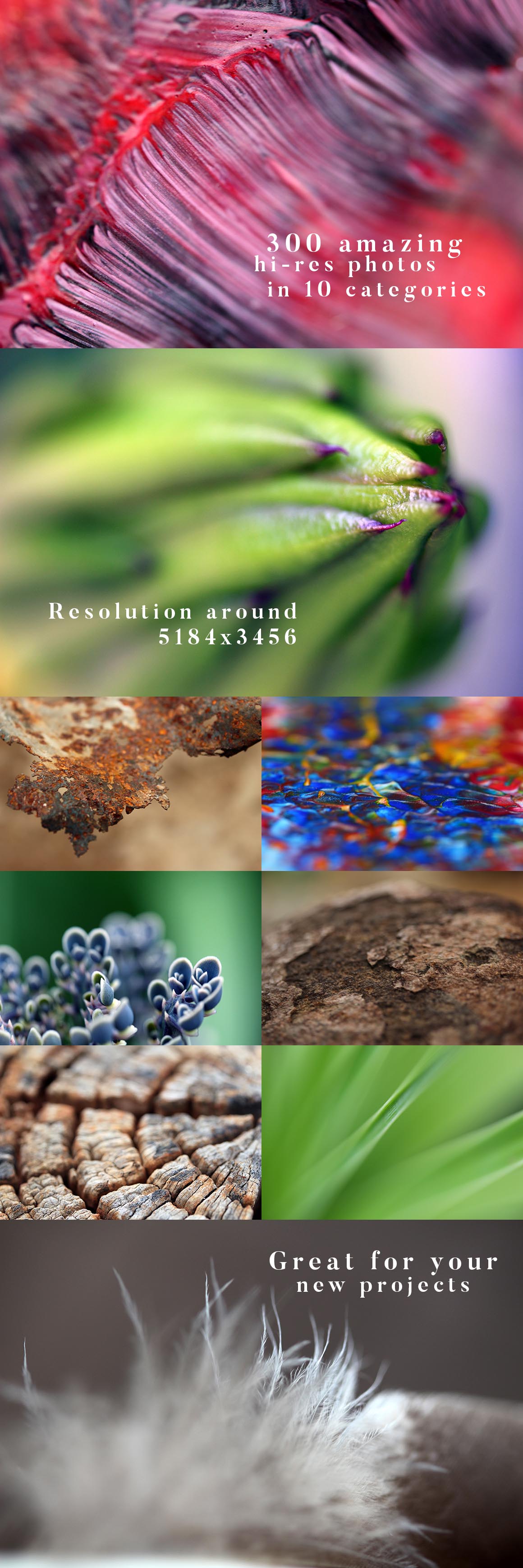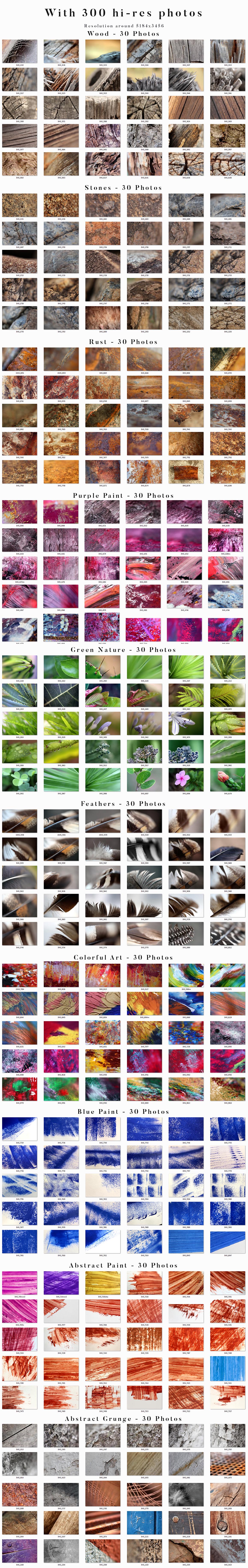 - 300 photos and backgrounds (hi-res 5184×3456)