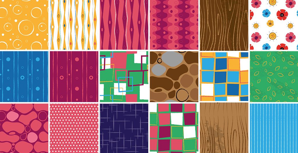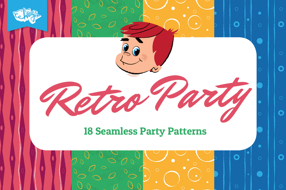 18 colorful and eye-catching seamless patterns in a retro style for Adobe Illustrator. Also includes jpg files.