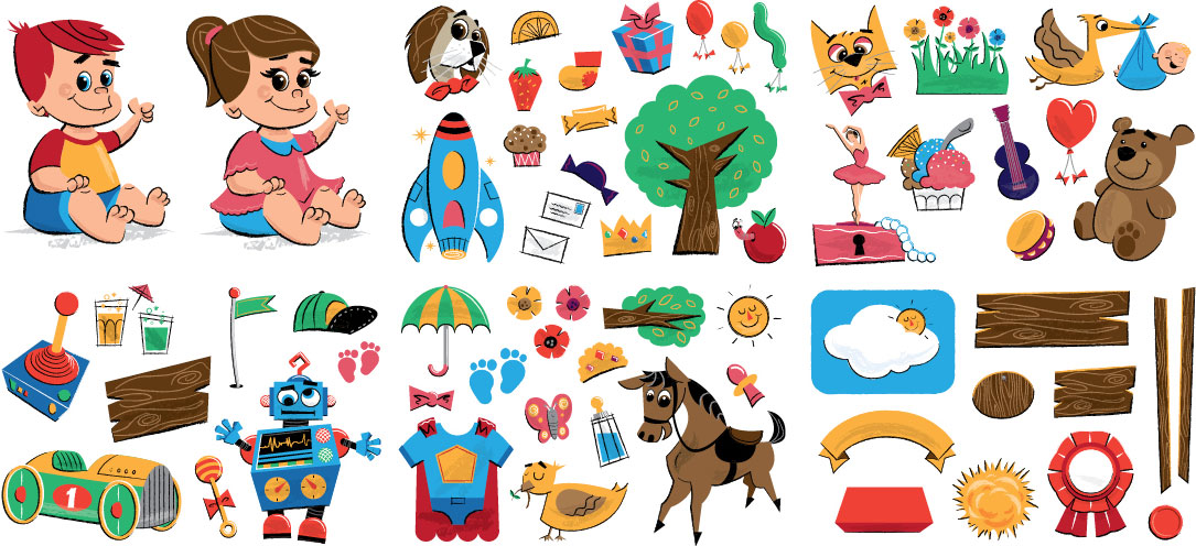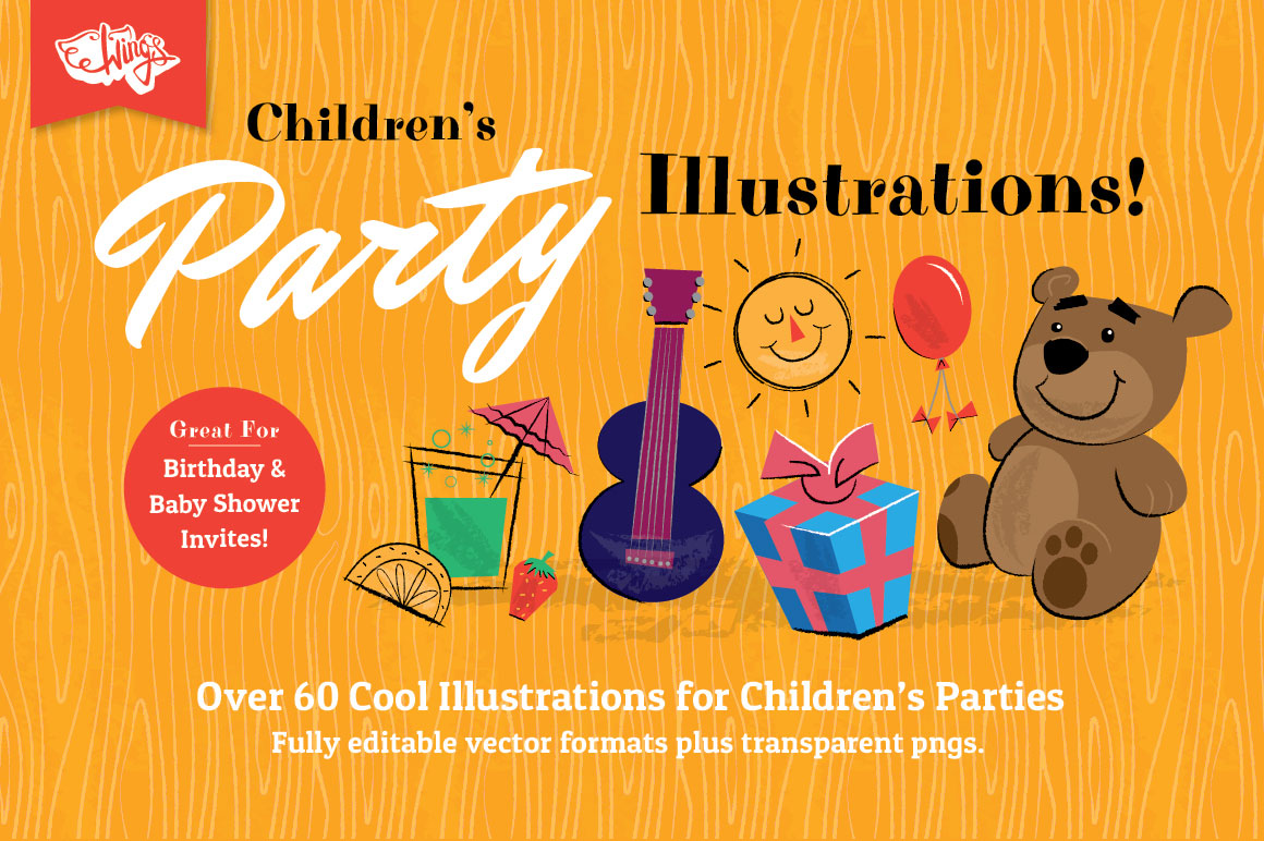 Over 60 vector illustrations and high-resolution transparent pngs to use in your own children’s party designs.