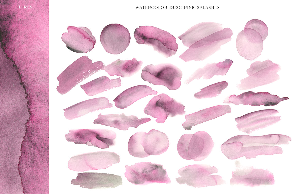- 27 watercolour dusc pink splashes ( png with transparent background)