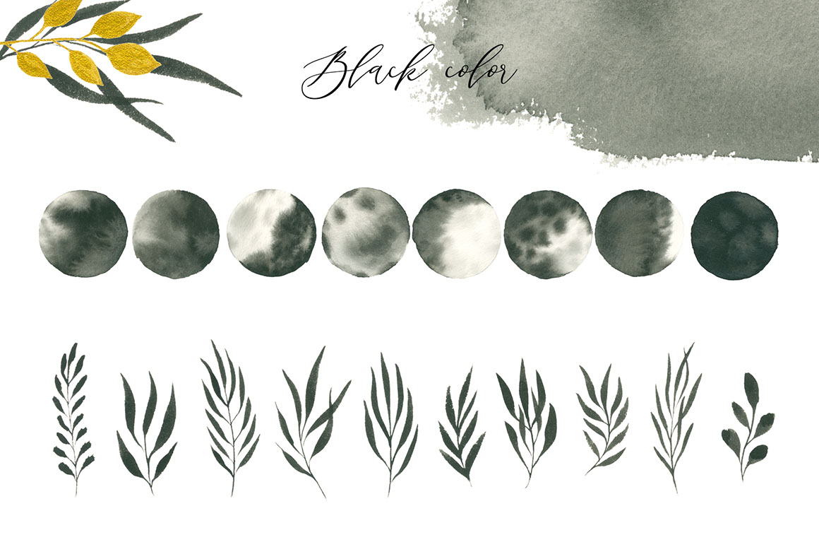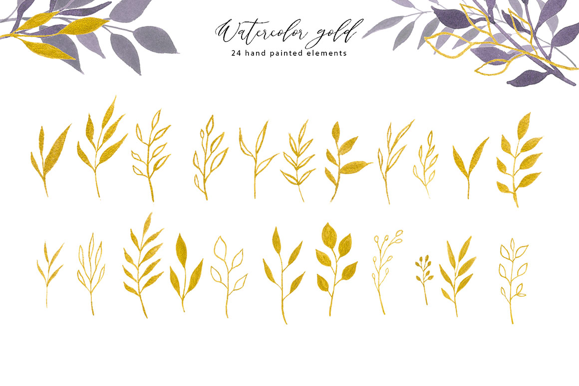 - 24 watercolor gold florals elements (png with transparent background)