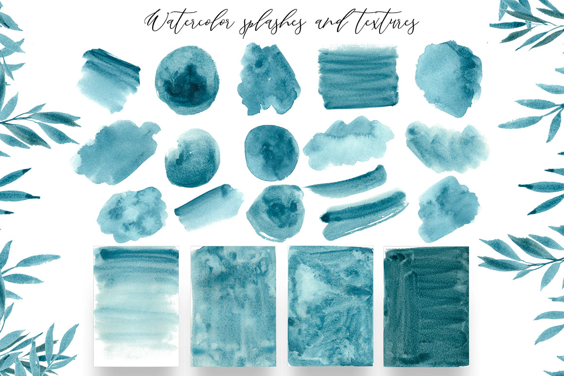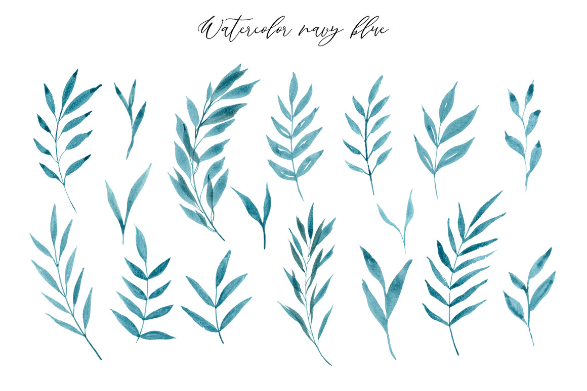 - 17 watercolour navy blue elements ( png with transparent background)