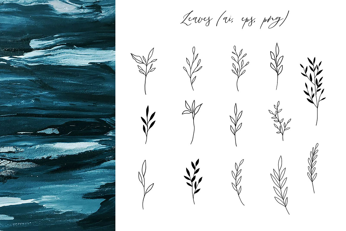 - 20 black and white leaves elements (ai, eps, png with transparent background)