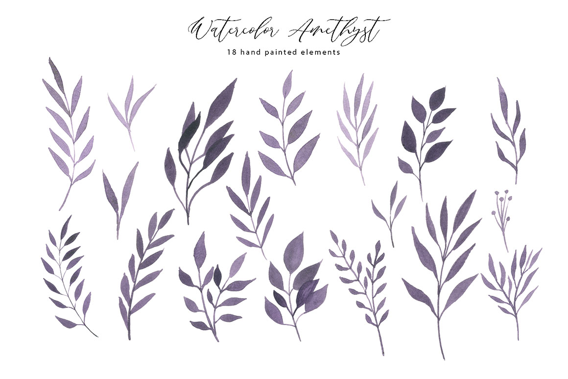 - 18 watercolour amethyst elements ( png with transparent background)