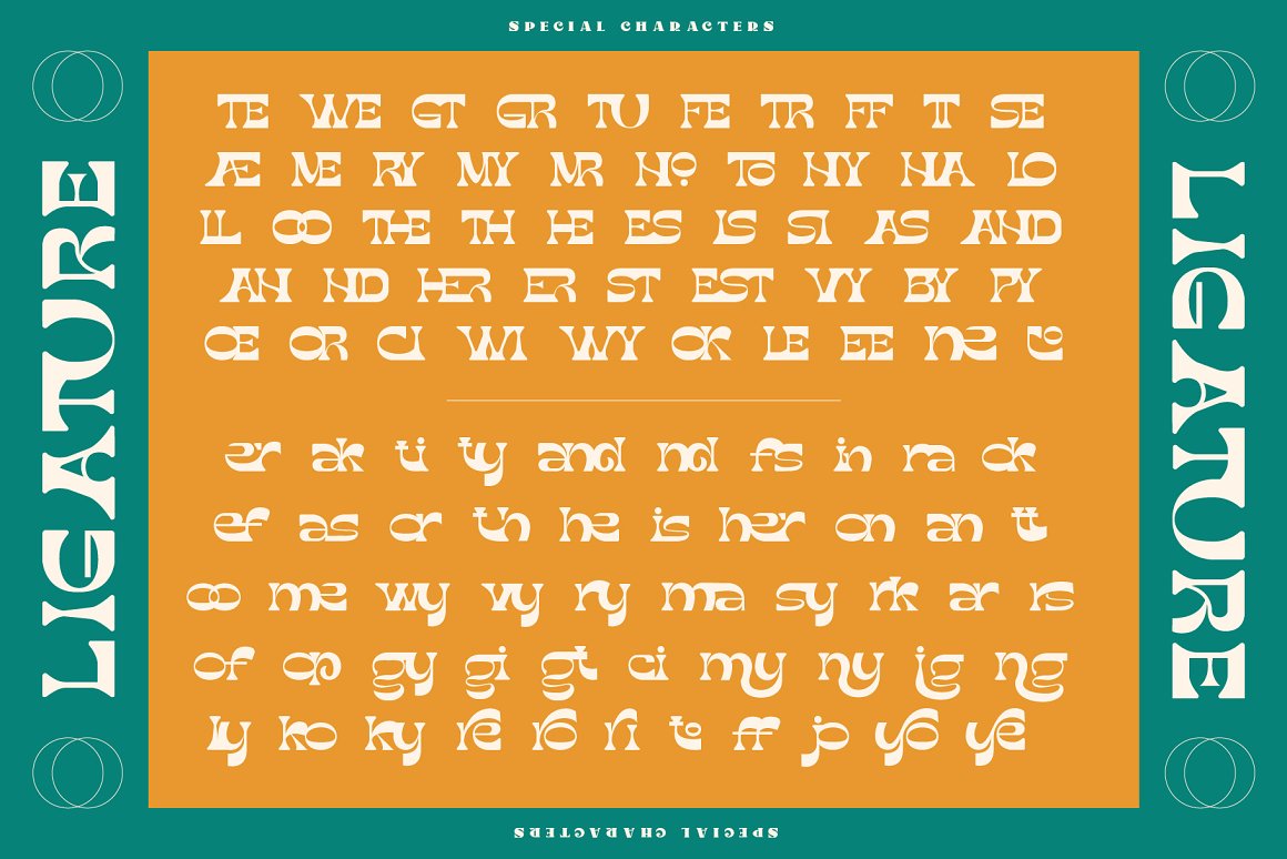 Introducing “Monde” display typeface. Powered with +100 ligatures to bring fluent combination & +70 alternate characters to get dynamic & more aesthetic looks. If your application does not feature a glyph palette, We also add the characters map in PDF to help you access hidden alternates available in our OpenType fonts. Simply chose the character on the PDF you want to use to your clipboard, then return to your application and paste while using the appropriate Monde font. Perfect and suitable for branding, headline, logotype, sticker, editorial design, and etc.