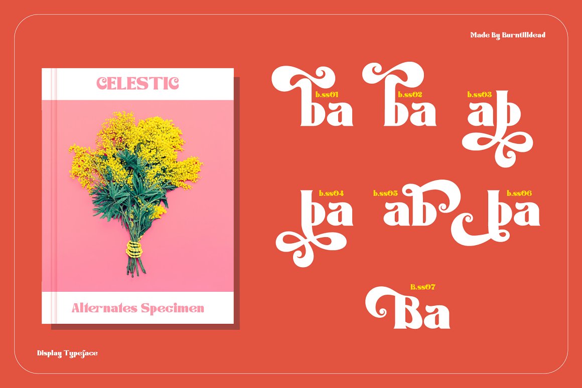 Say hi to “Celestic” typeface. Inspired by the classic 60’s design styles, a decade of bold and swashes styles. This font is very easy to use with hundreds of stylistic alternate (ss01-ss07), ligatures & powered with opentype feature. If your application does not feature a glyph palette, We also add the characters map in PDF to help you access hidden alternates available in our OpenType fonts. Simply chose the character on the PDF you want to use to your clipboard, then return to your application and paste while using the appropriate Celestic font. The font really bring a good statement for your logo design and can be the image of a design. Celestic is very unique and easy to apply to any media; t-shirts, posters, sign boards, and social media needs.