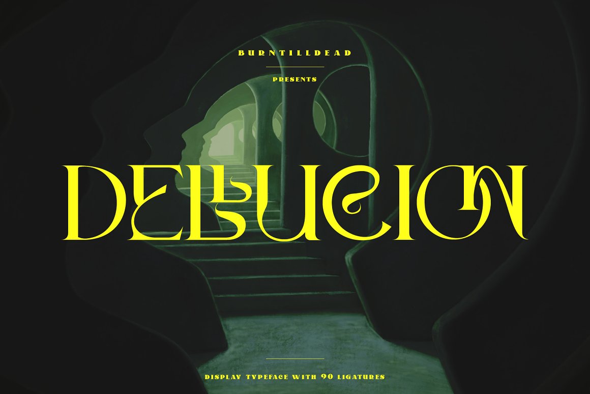 “Dellucion” typeface powered with 90 ligatures to bring fluent looks combination. Perfect and suitable for branding, headline, logotype, sticker, editorial design, and etc.