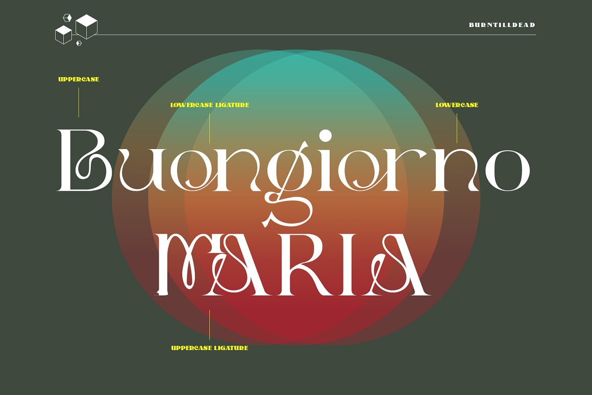 Trendy & Decorative Fonts from Burntilldead contains 12 unique, artitsic & decorative display font sets for your new projects! Don’t miss this creative & fashion style font & branding bundle 😉